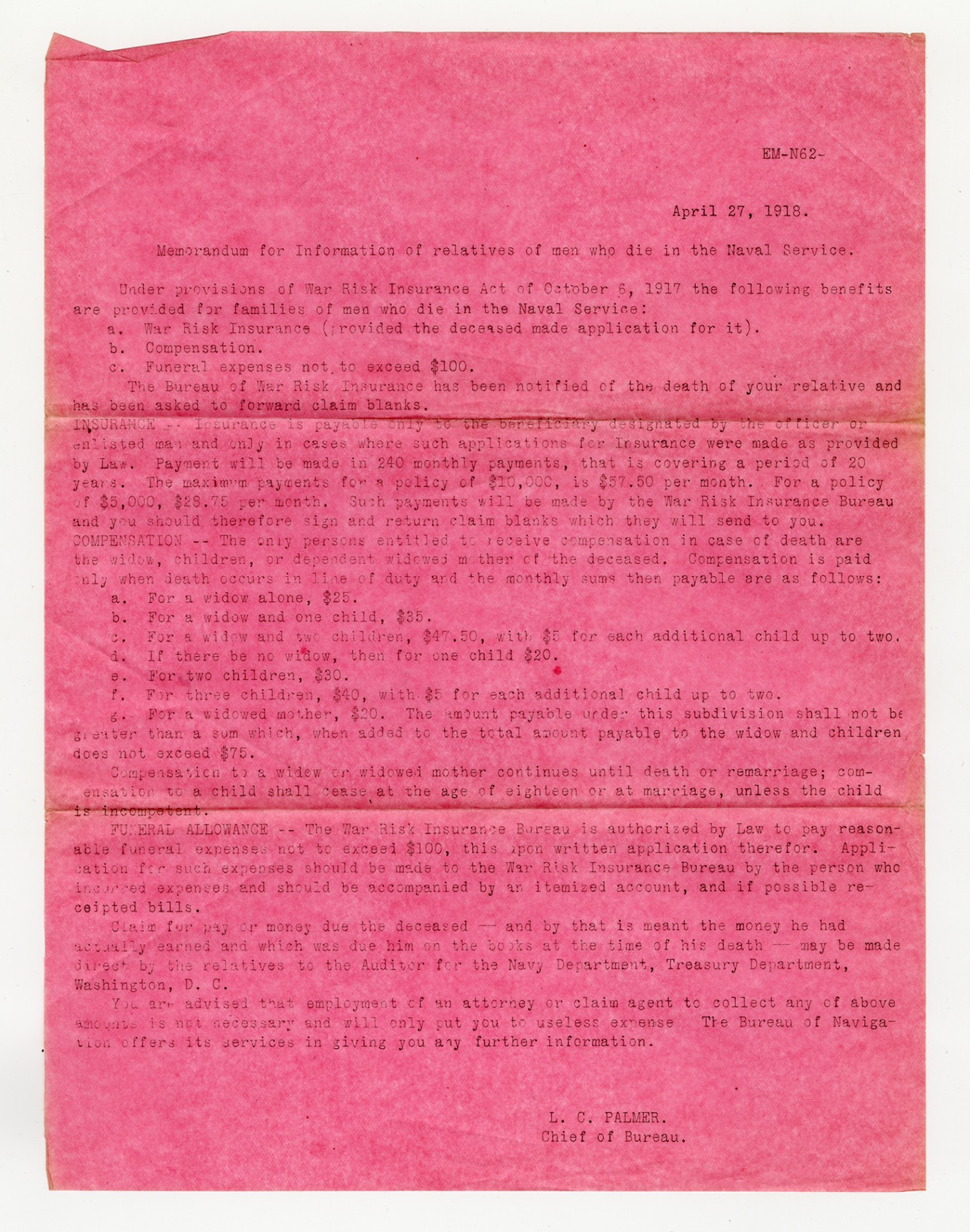 L.C. Palmer Memorandum - April 27, 1918
