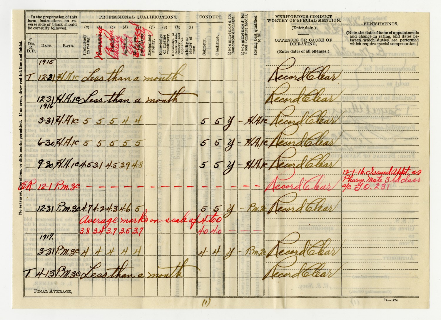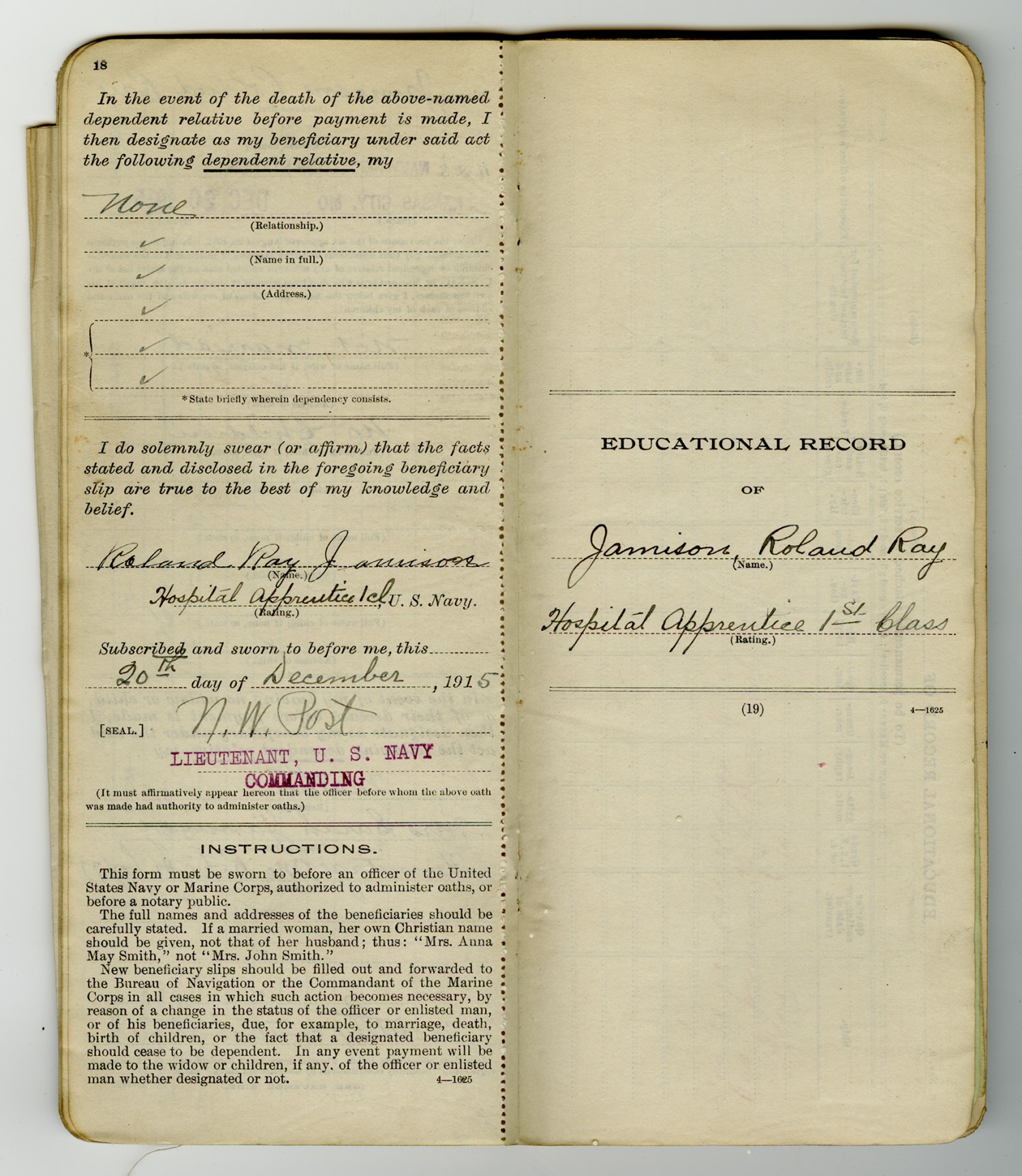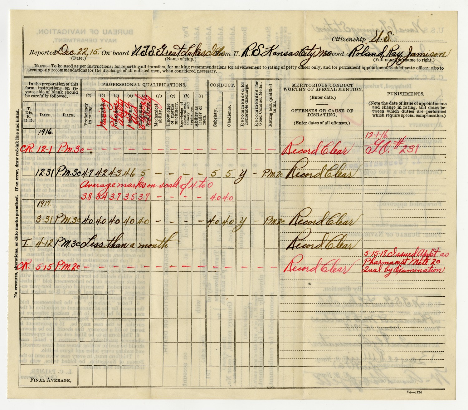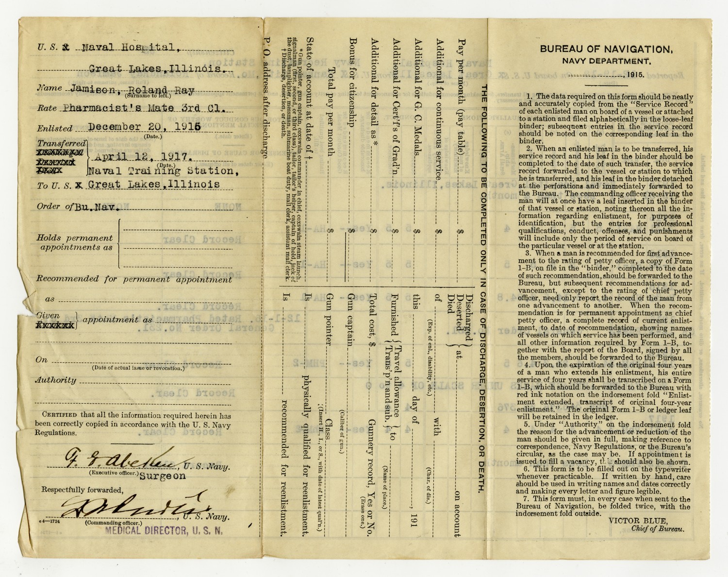 Bureau of Navigation Form - December 22, 1915