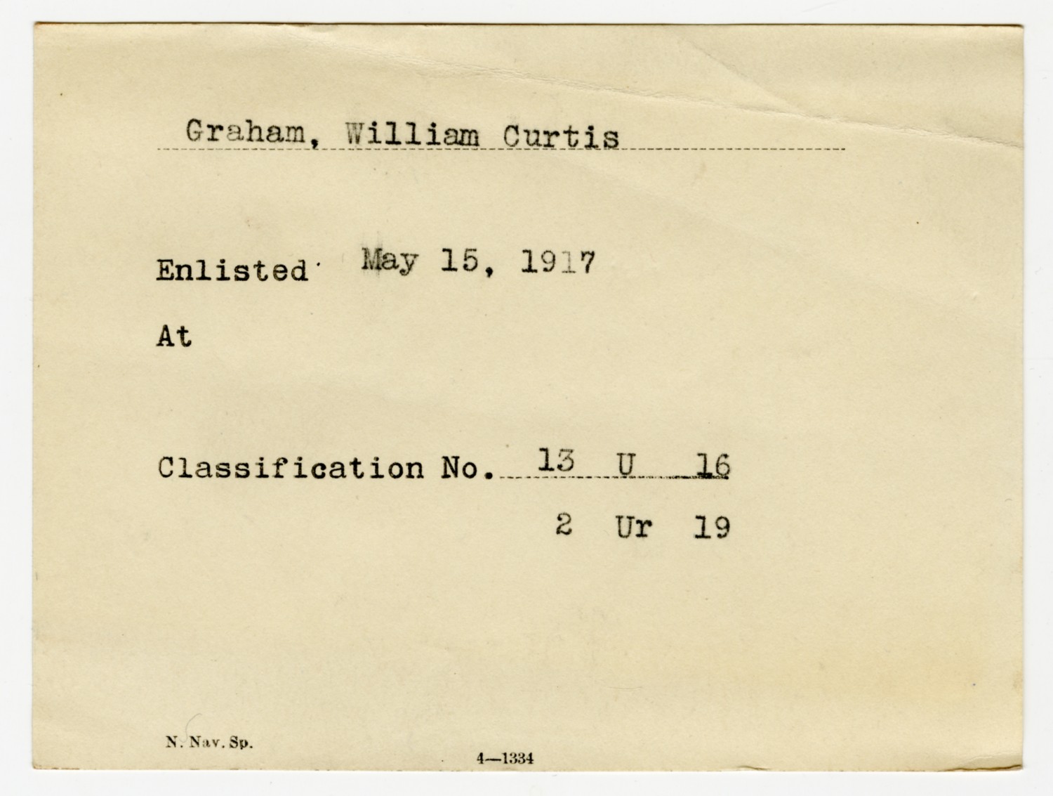 William Curtis Graham Enlistment Slip - May 15, 1917