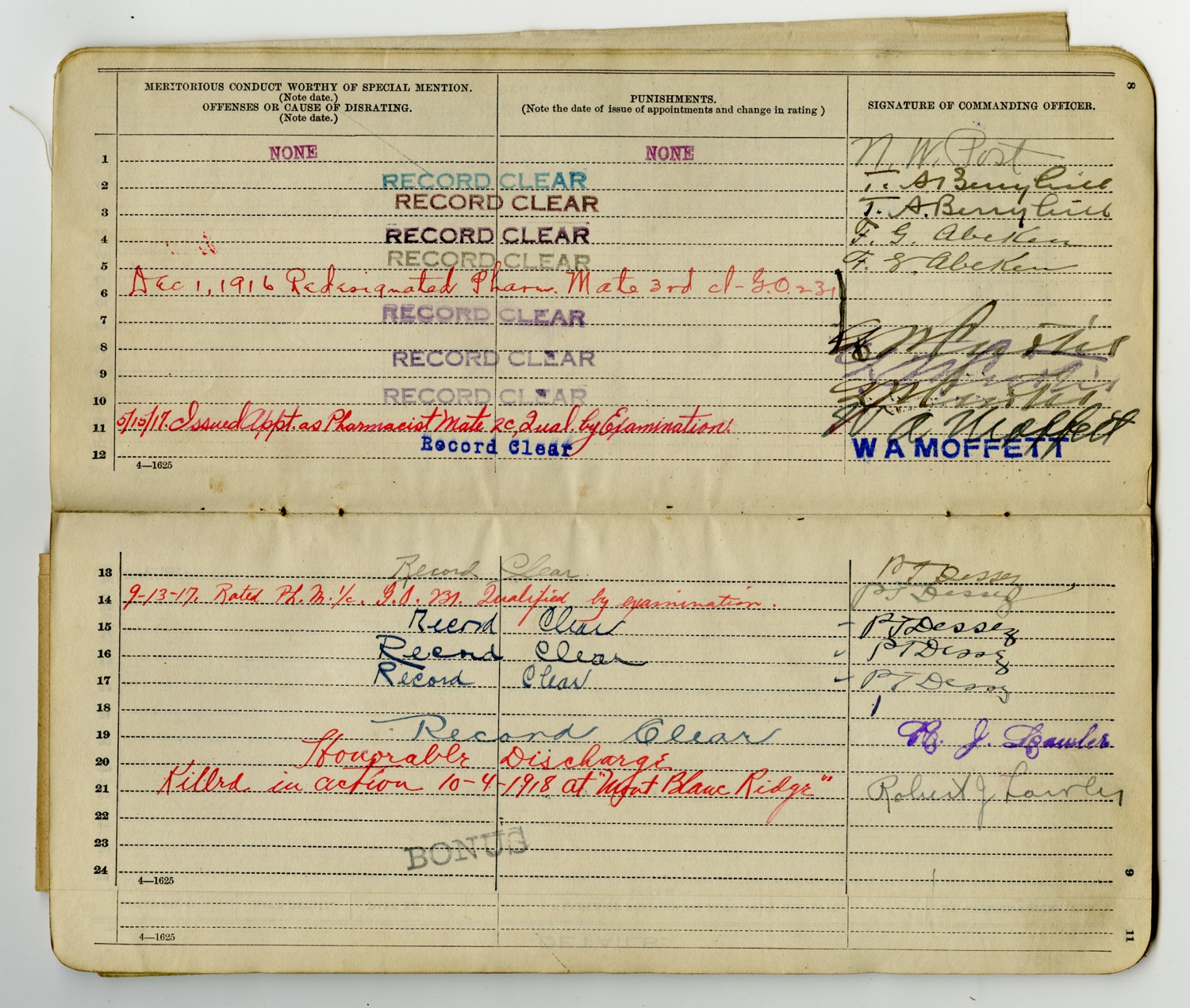 Bureau of Navigation Form - April 13, 1917