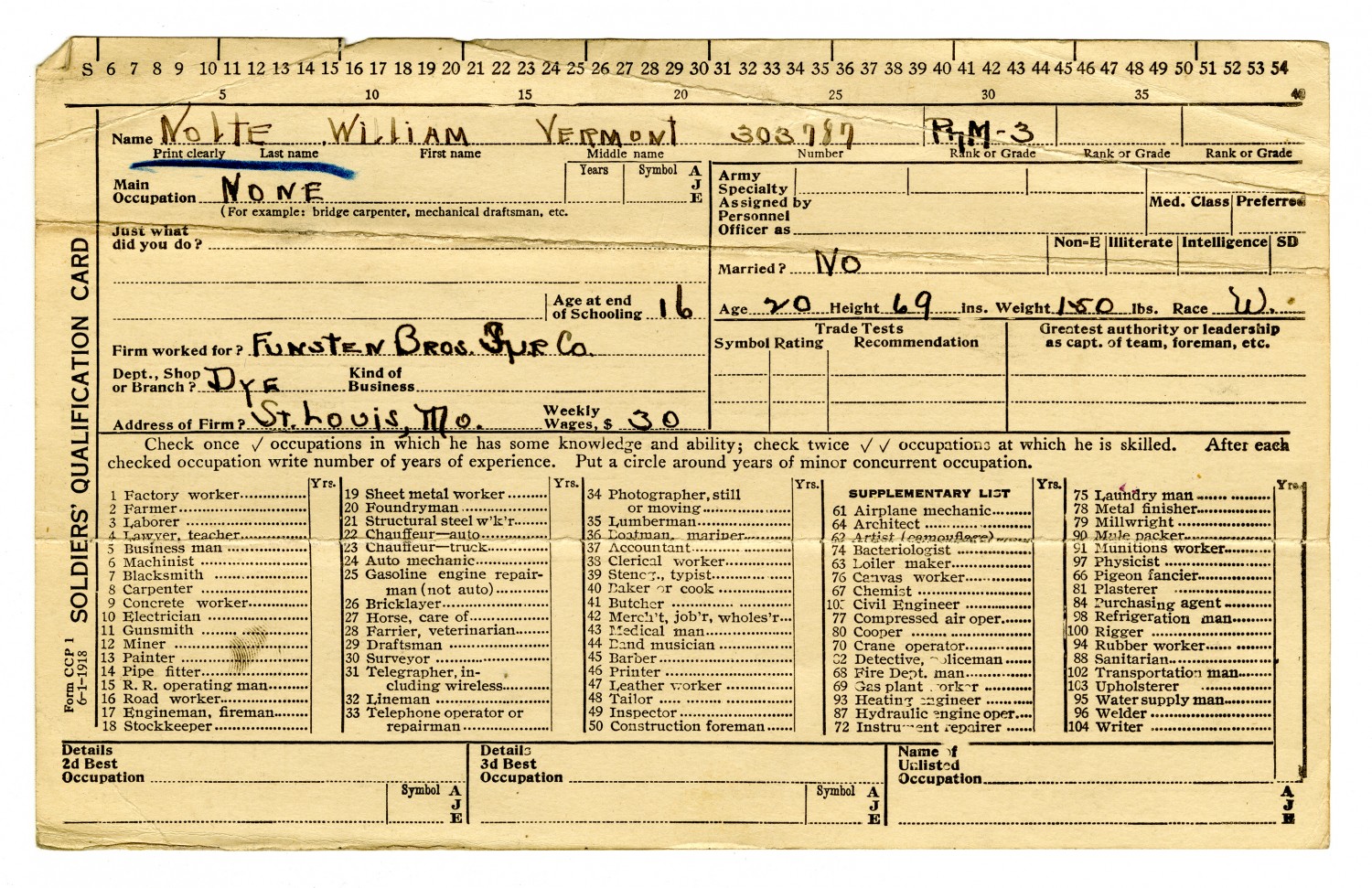 | Source | Nolte, William V.; Official Military Personnel Files, 1912-1998; Records of the Army Staff, 1903-2009, Record Group 319; National Archives and Records Administration-National Personnel Records Center (St. Louis). |