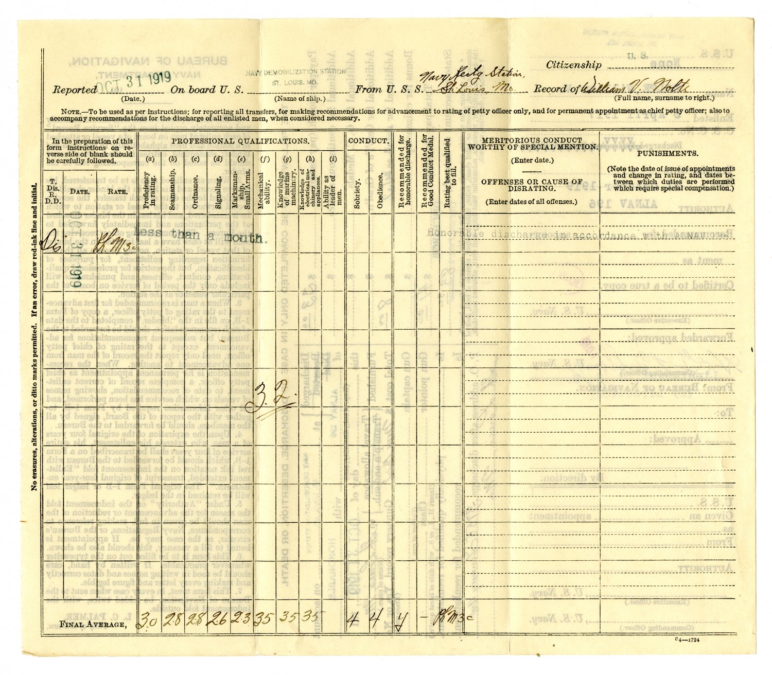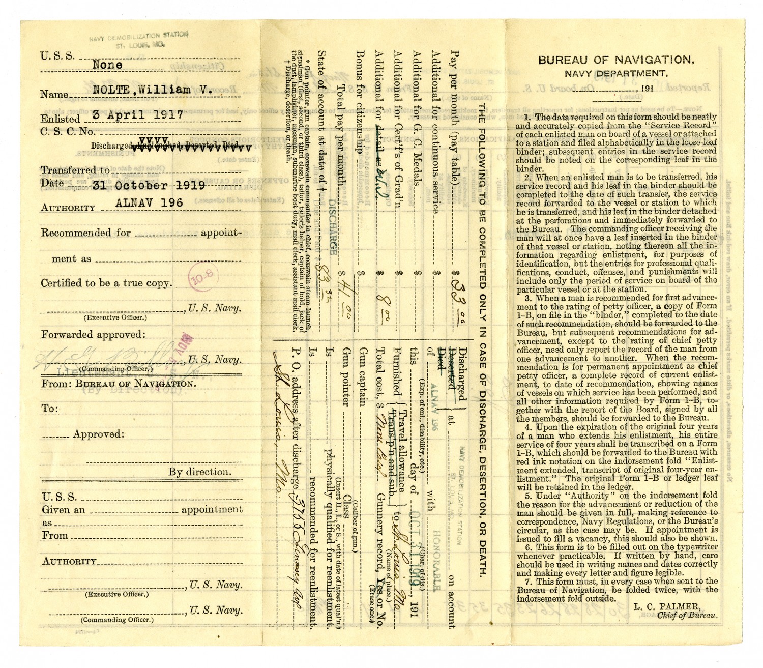 Bureau of Navigation Discharge Papers - October 31, 1919
