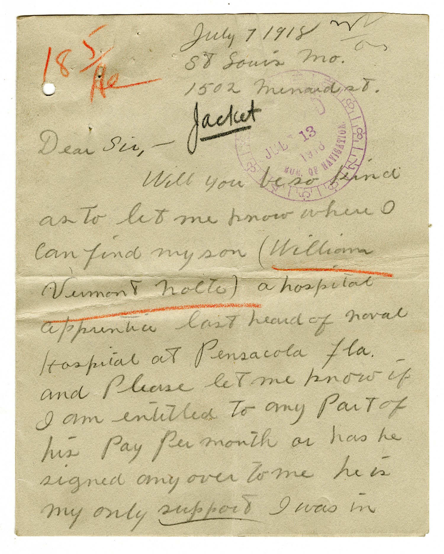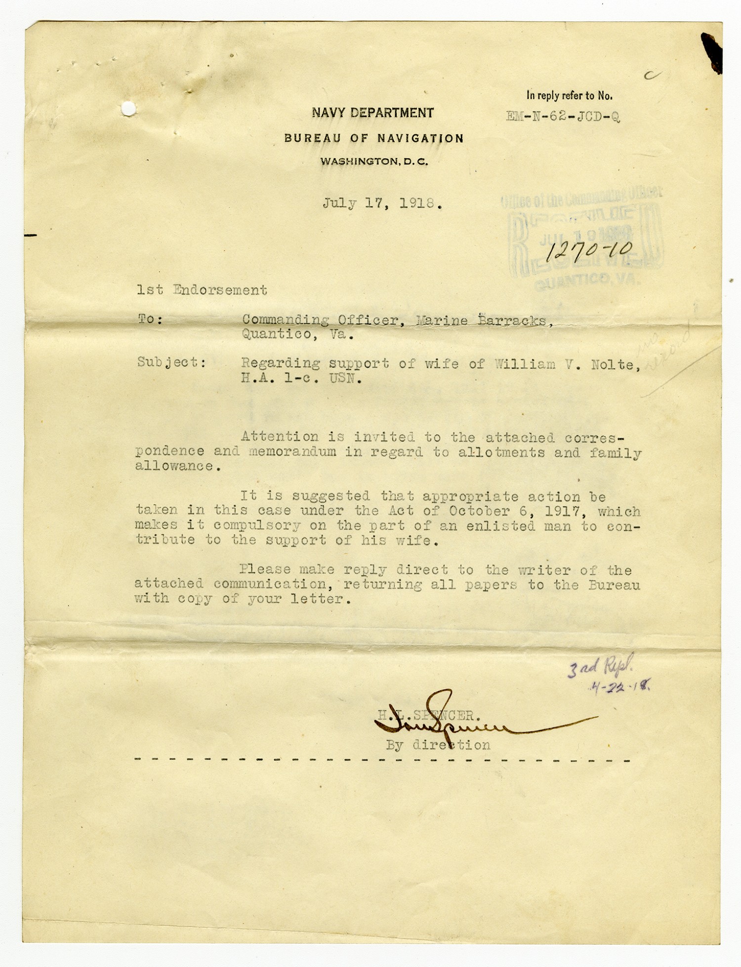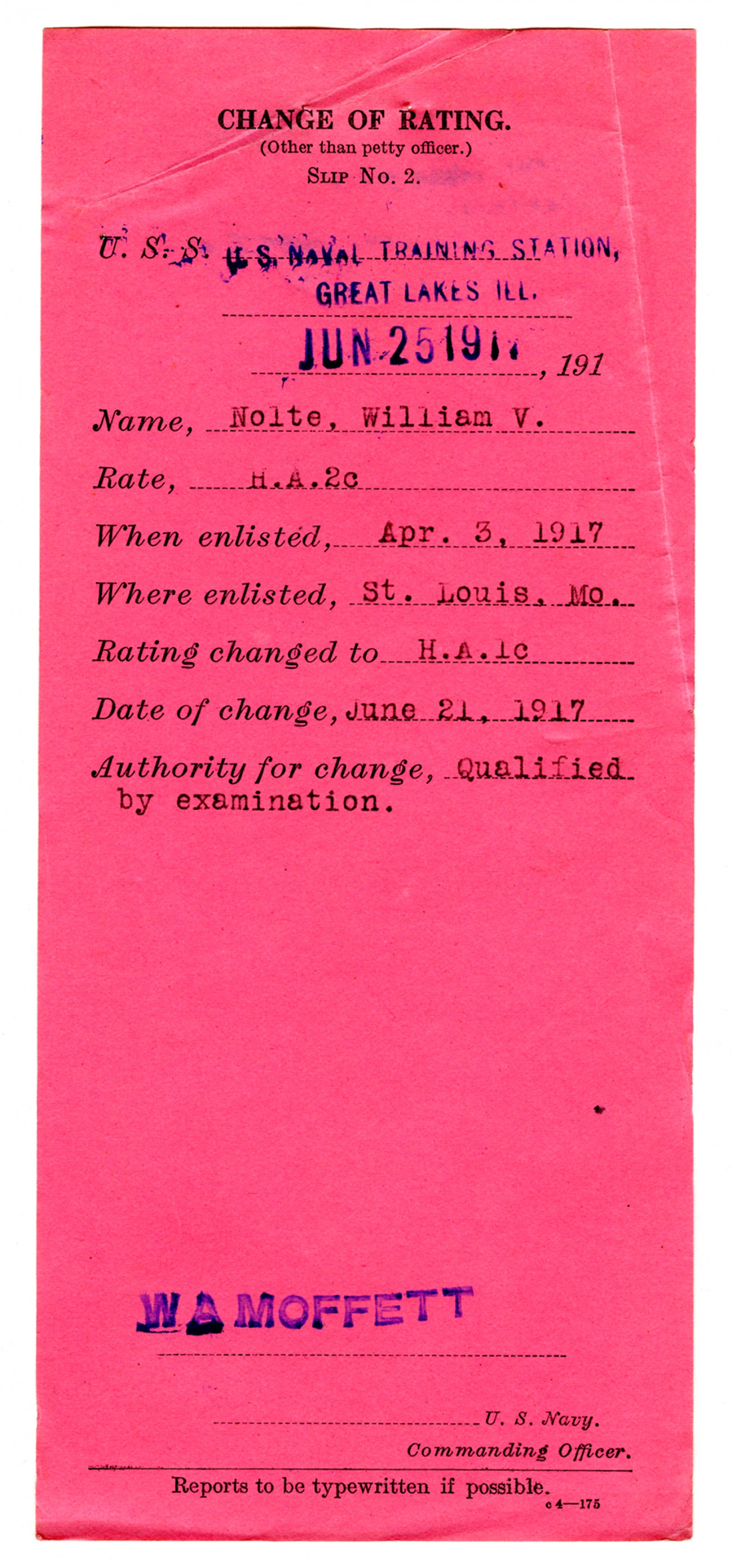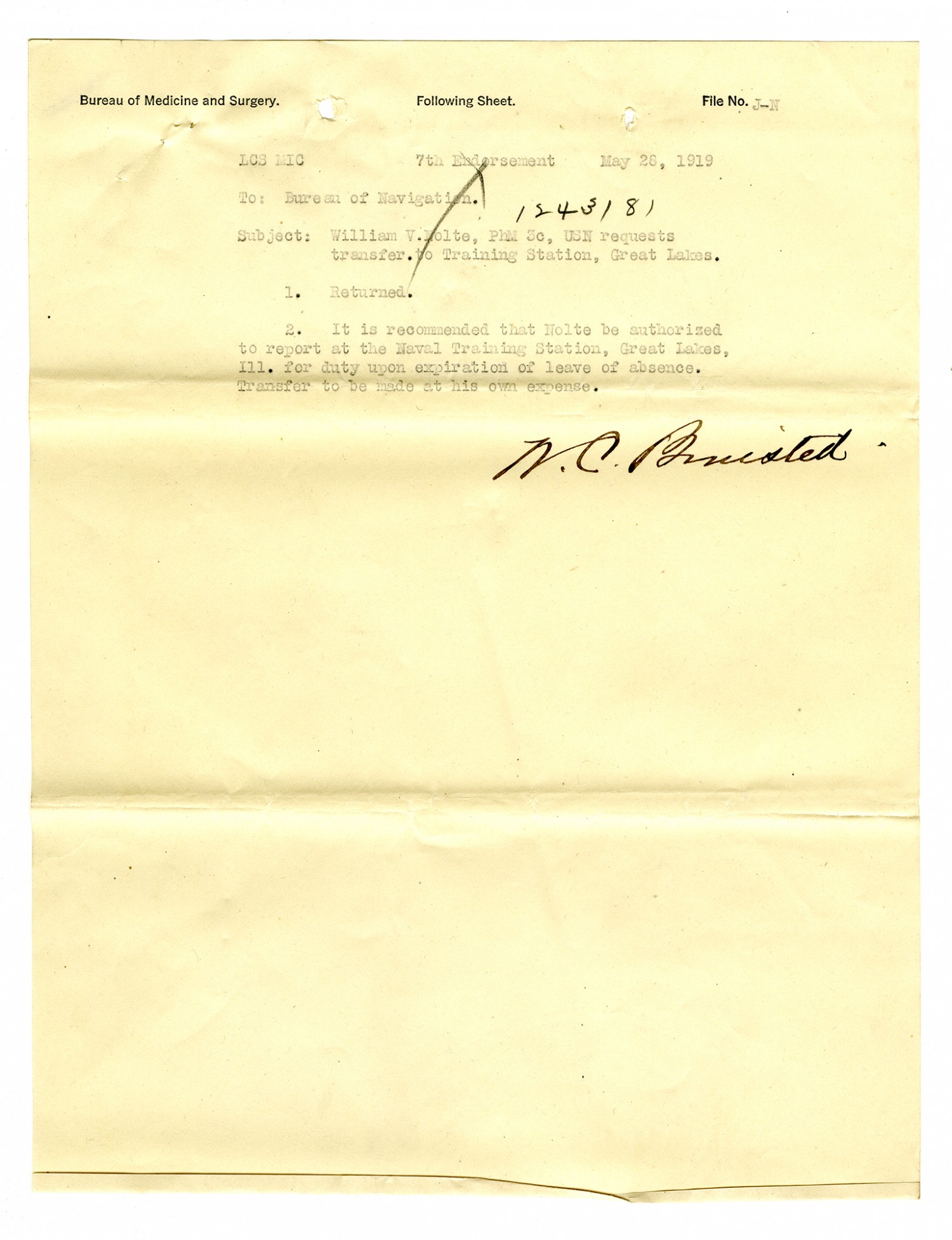 William V. Nolte letter to Bureau of Navigation - May 12, 1919
