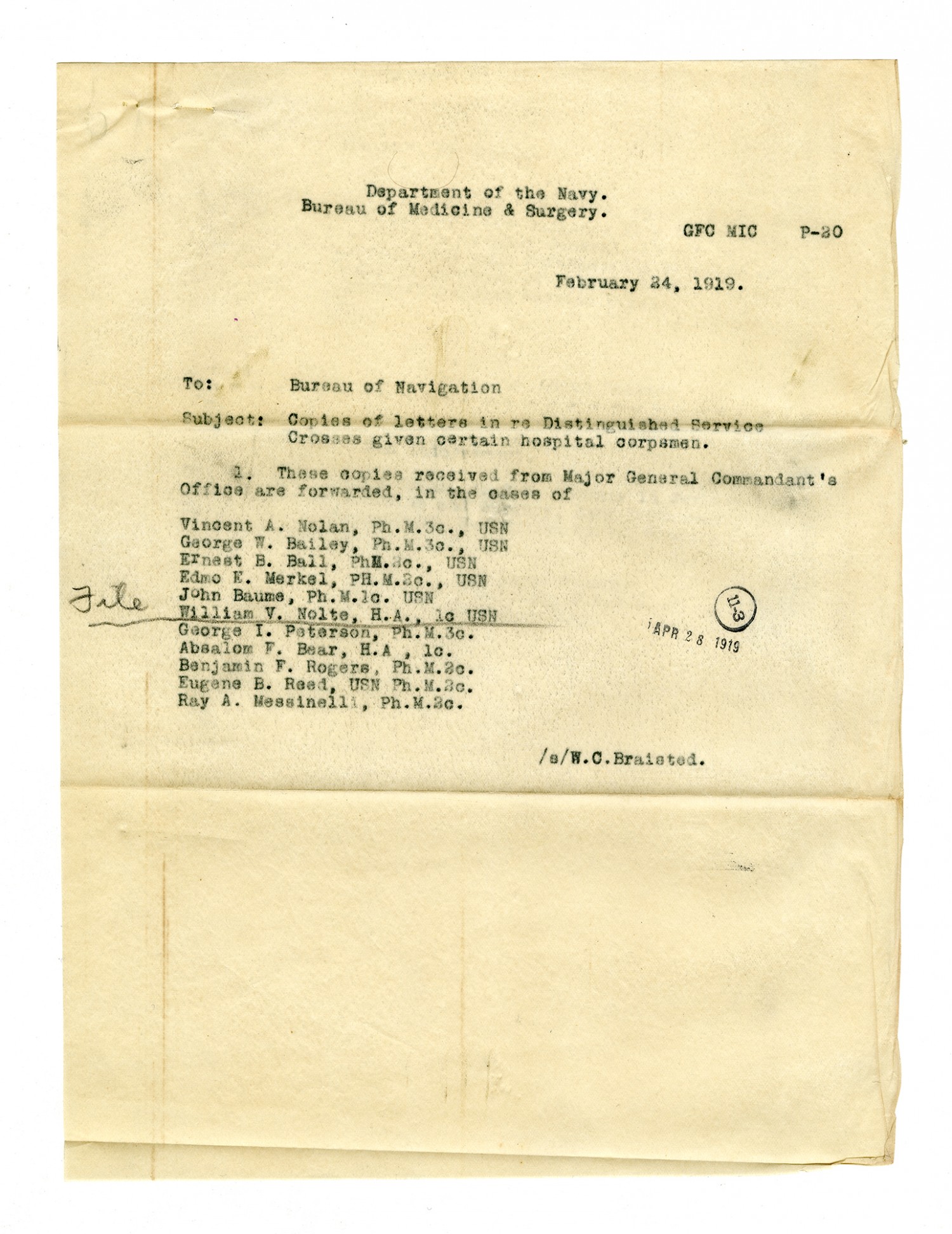 W.C. Braisted letter to Bureau of Navigation - February 24, 1919