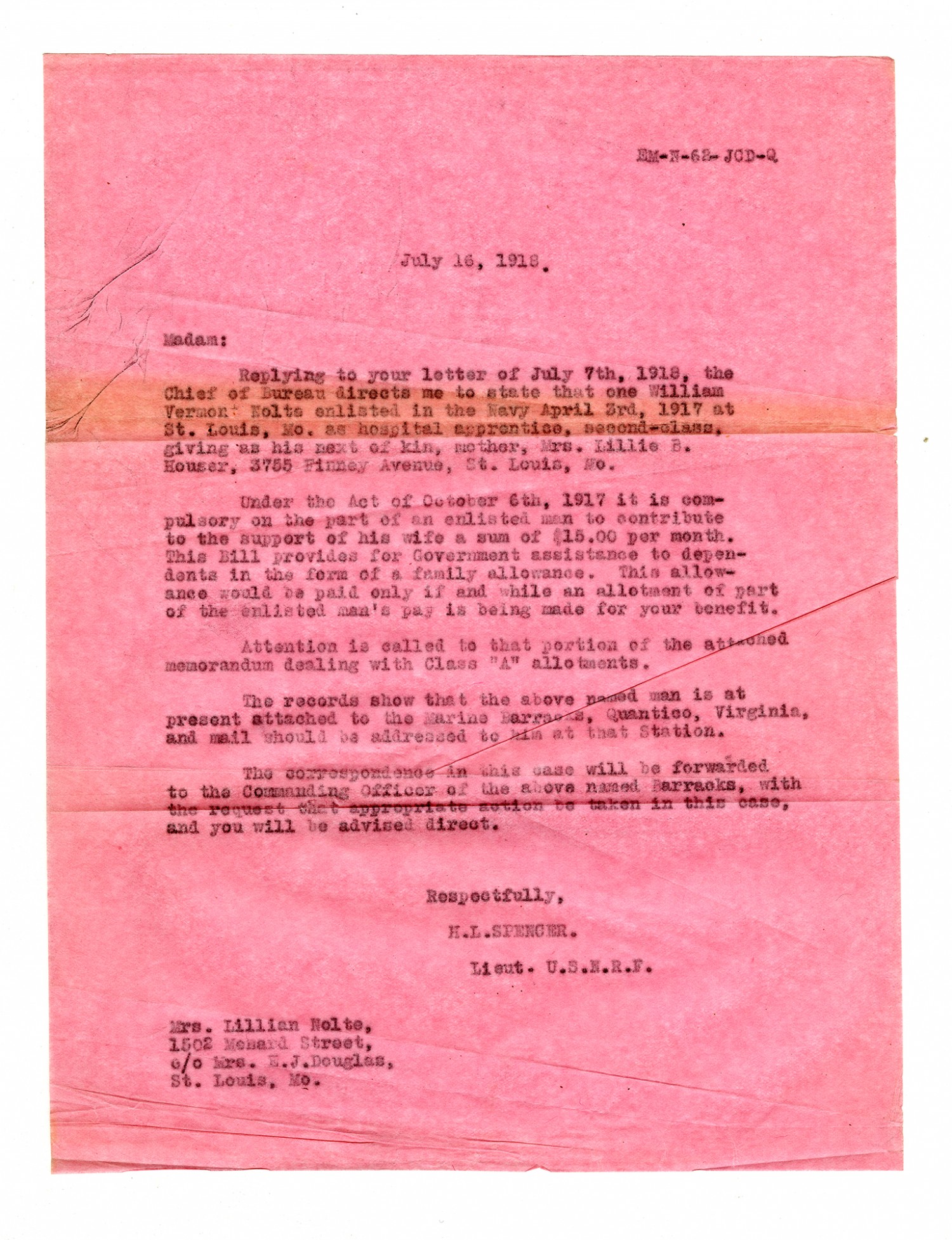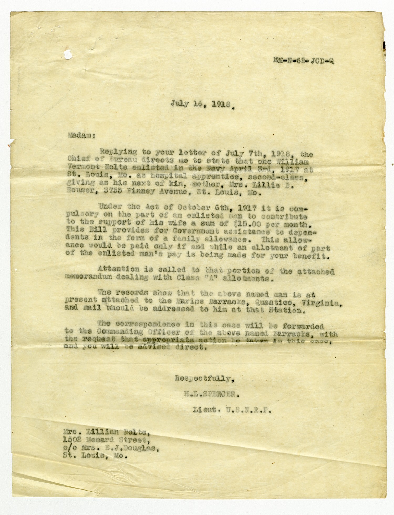 H.L. Spencer to letter Mrs. Lillian Nolte - July 16, 1918