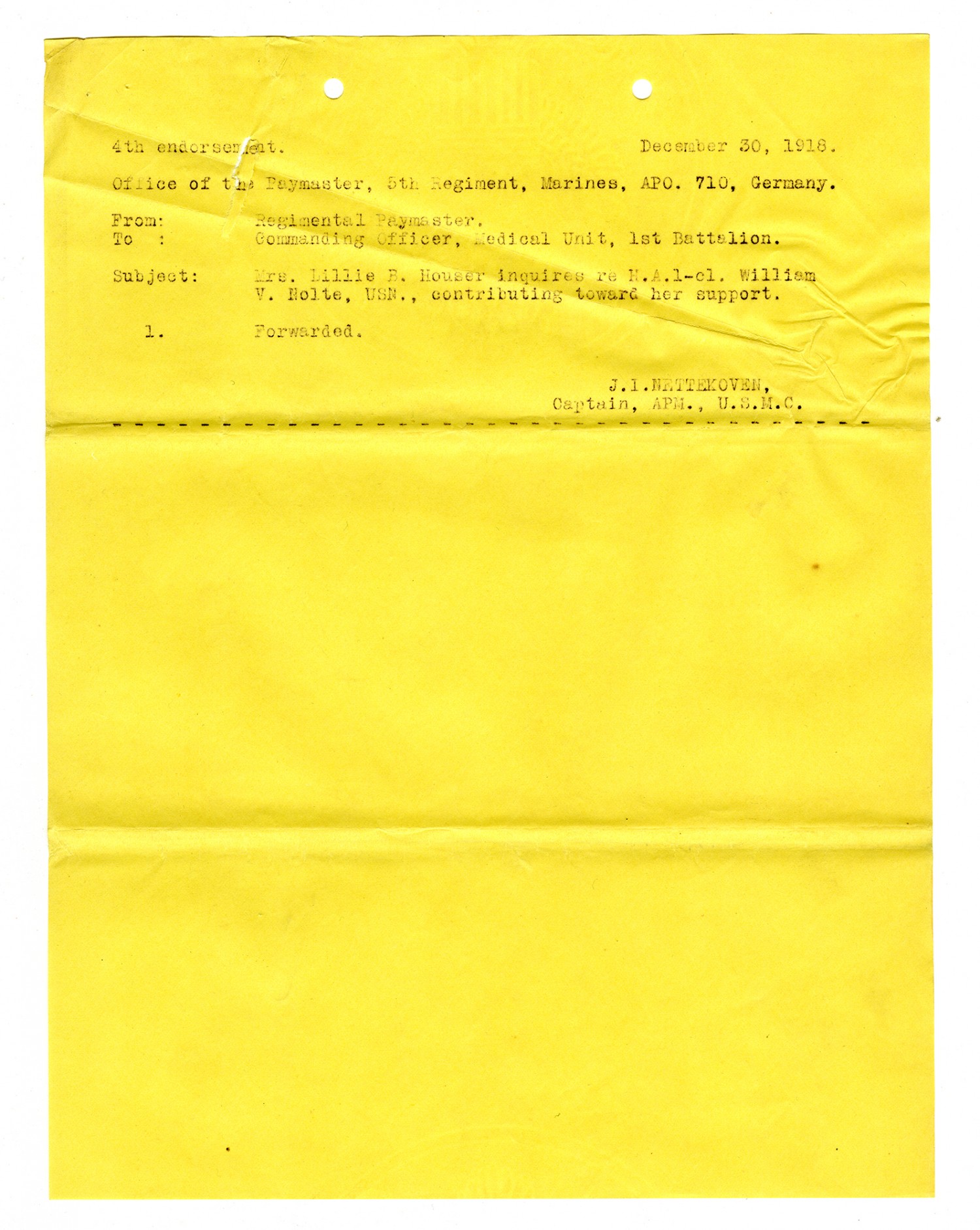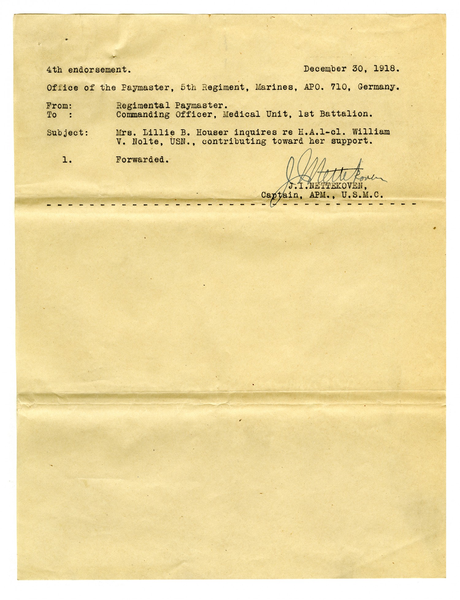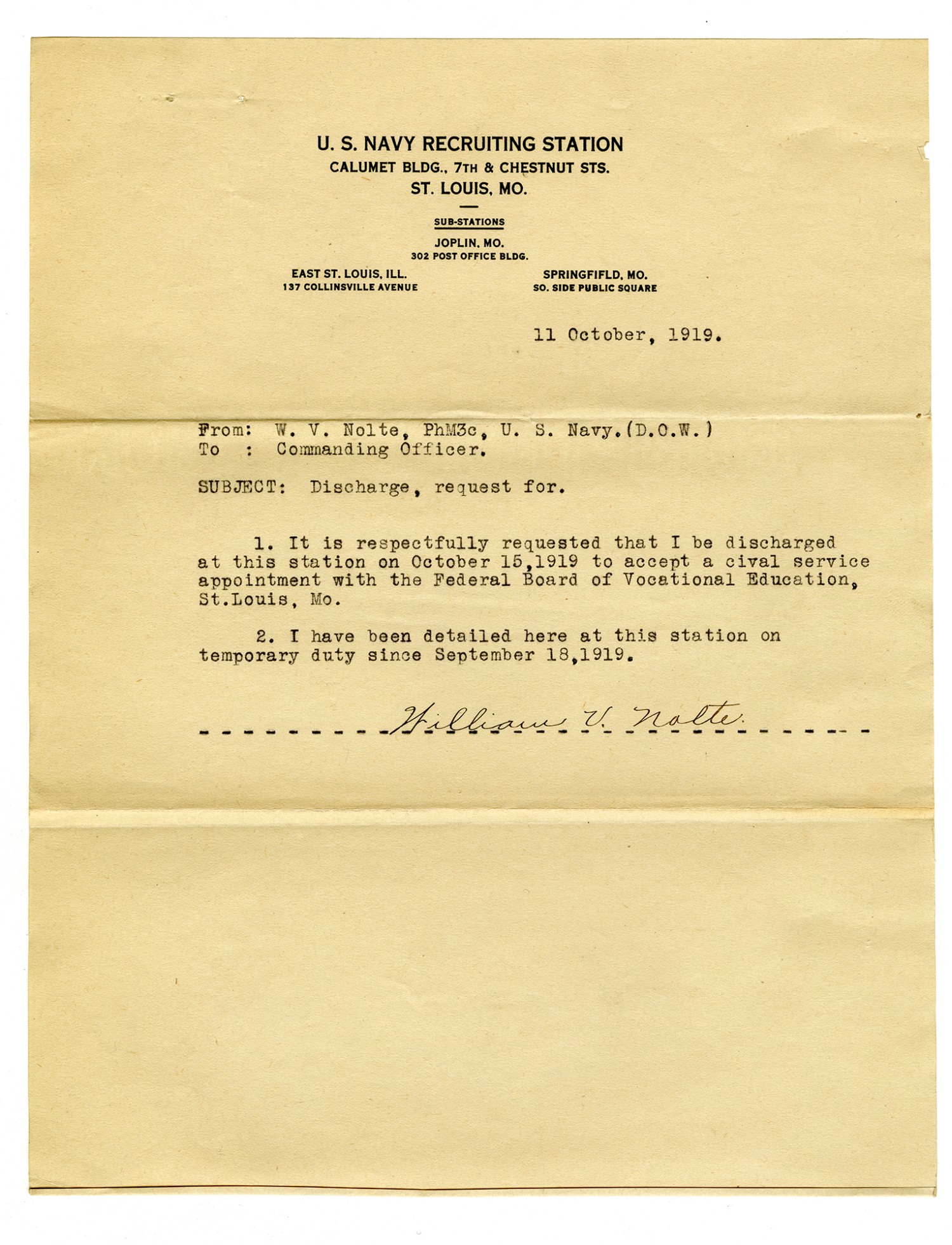 William V. Nolte letter to Commanding Officer - October 11, 1919