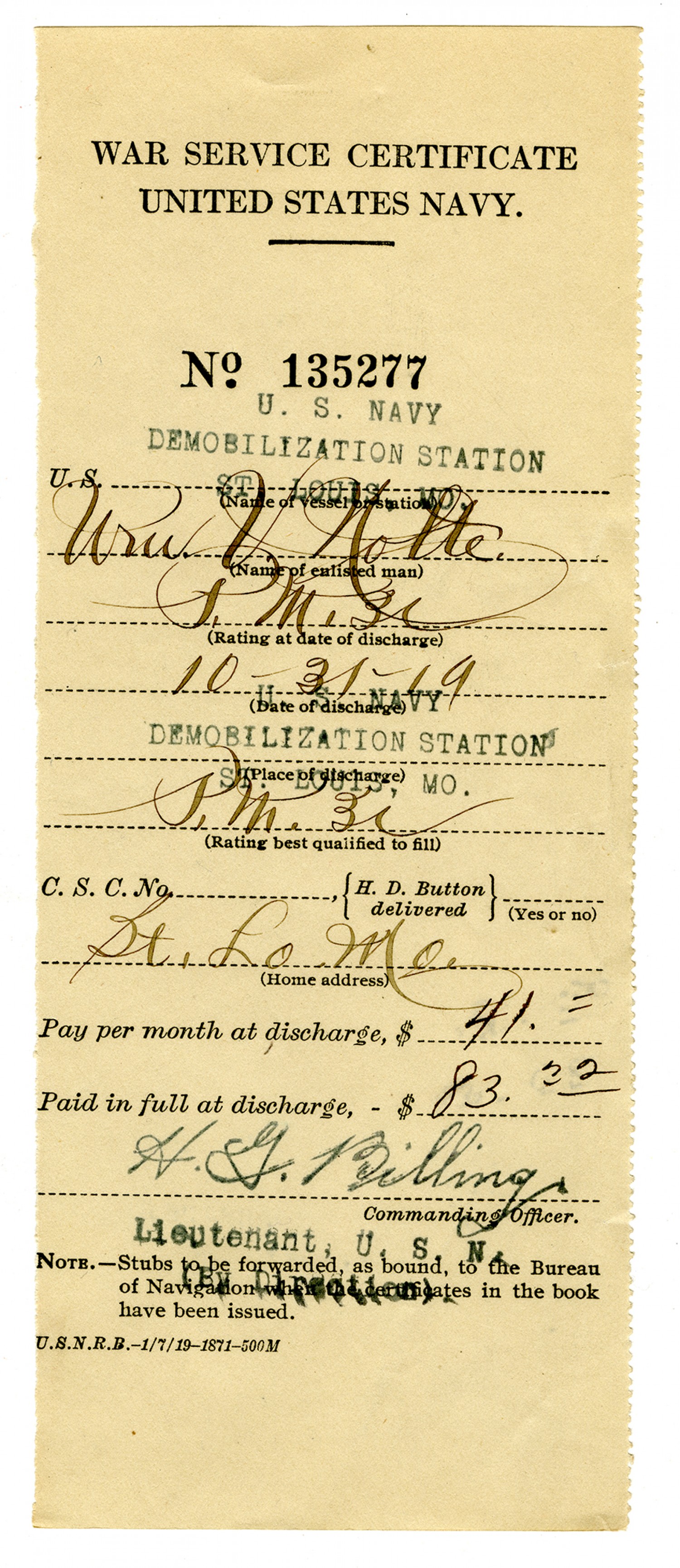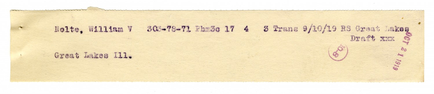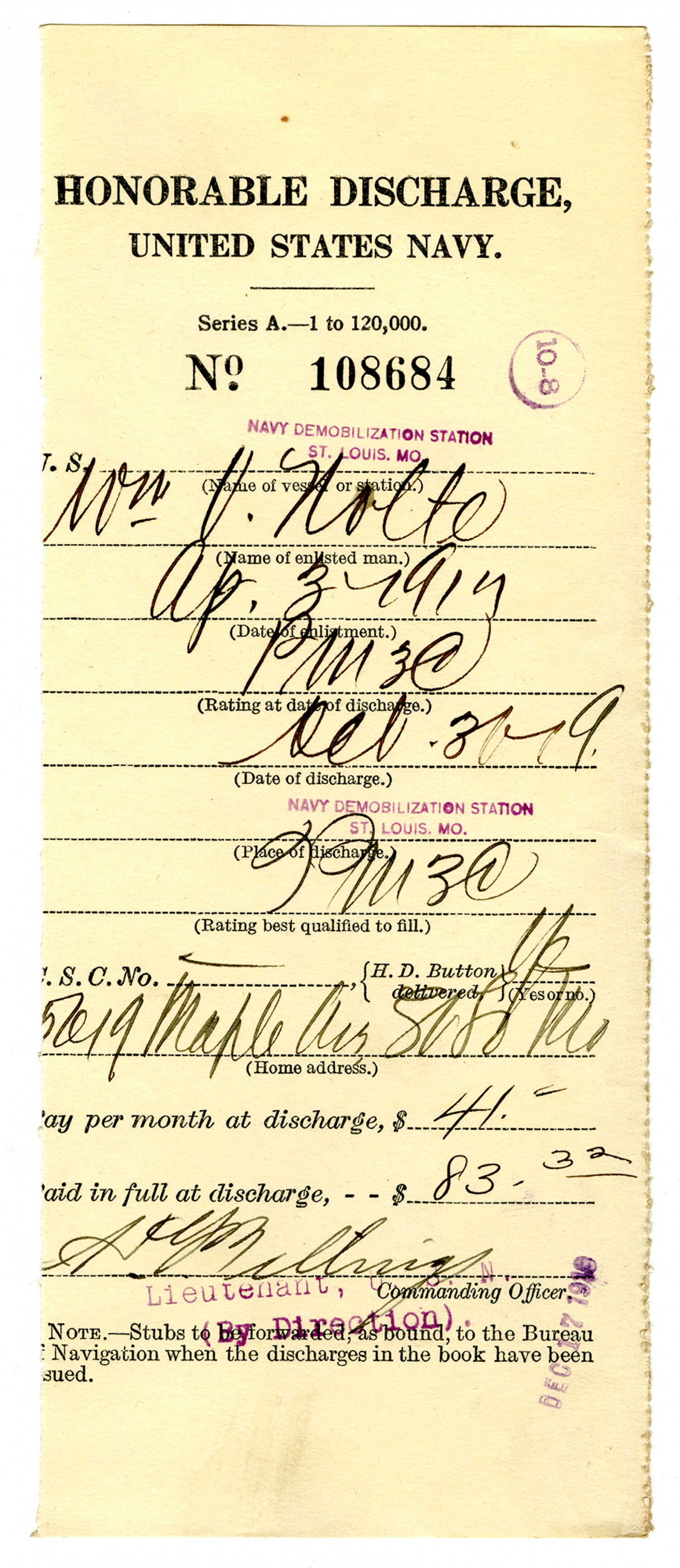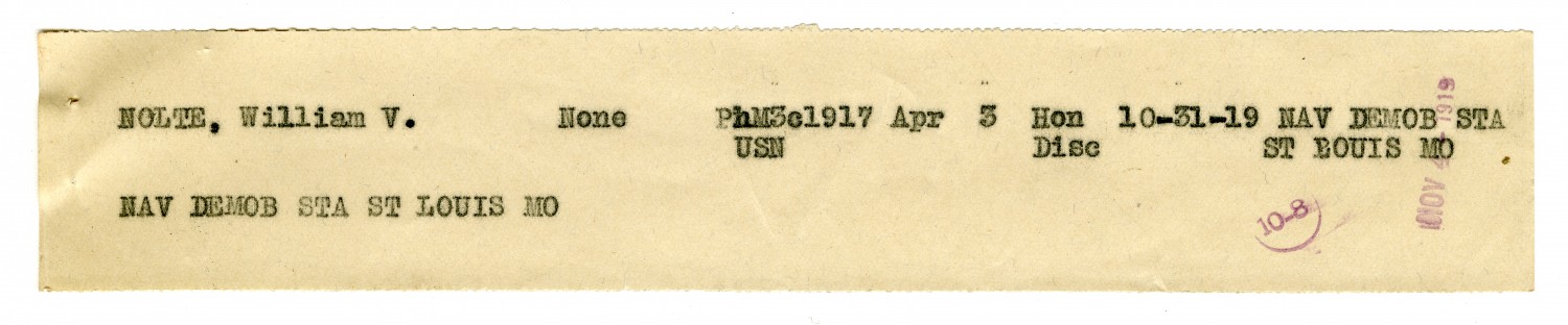 William Nolte Honorable Discharge Slip - October 31, 1919