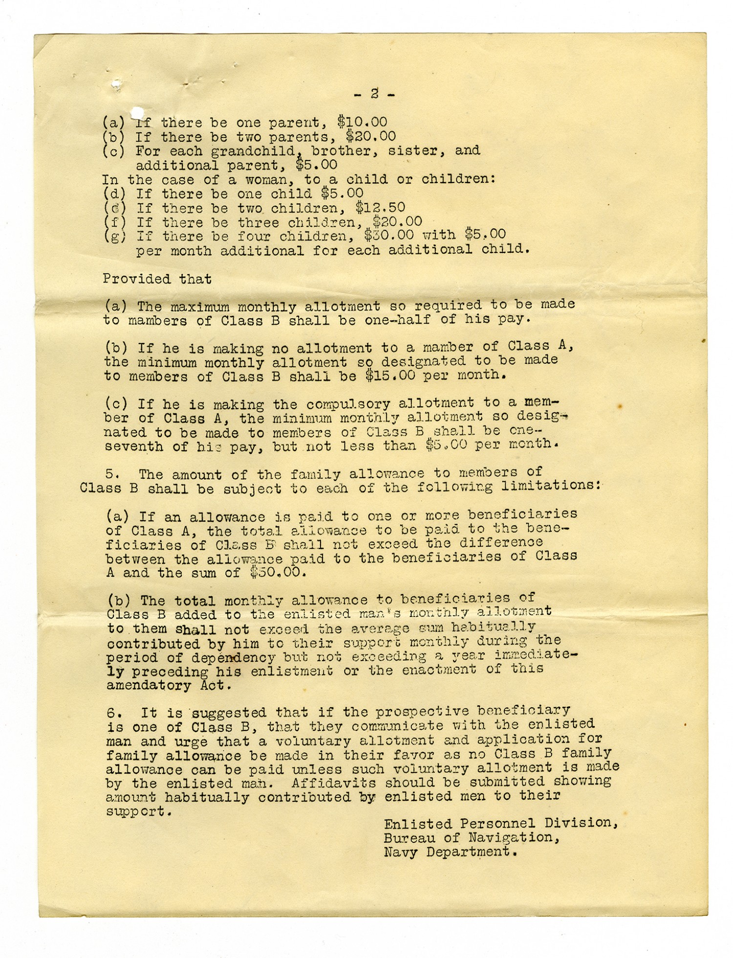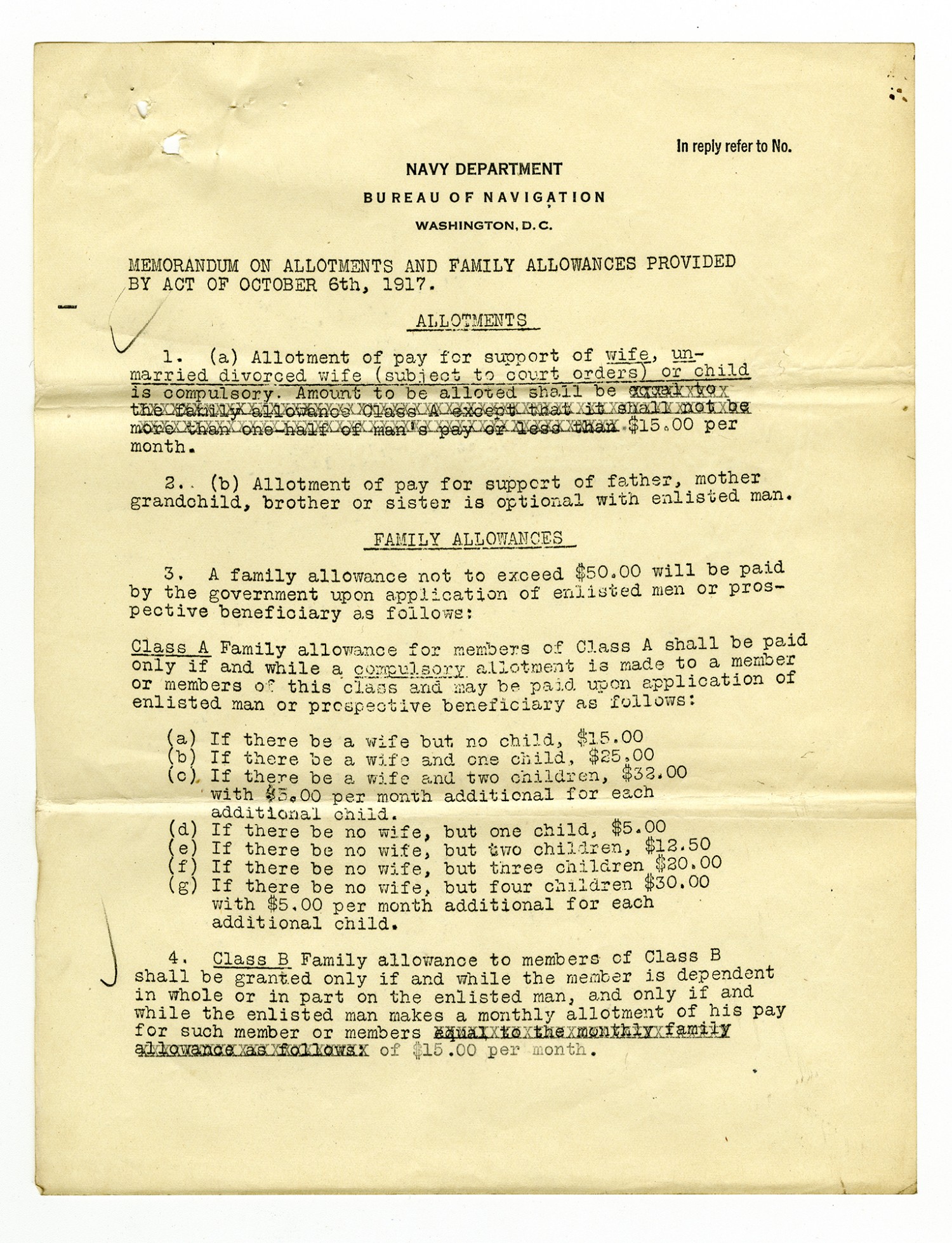 Memorandum on Allotments and Family Allowances - October 6, 1917