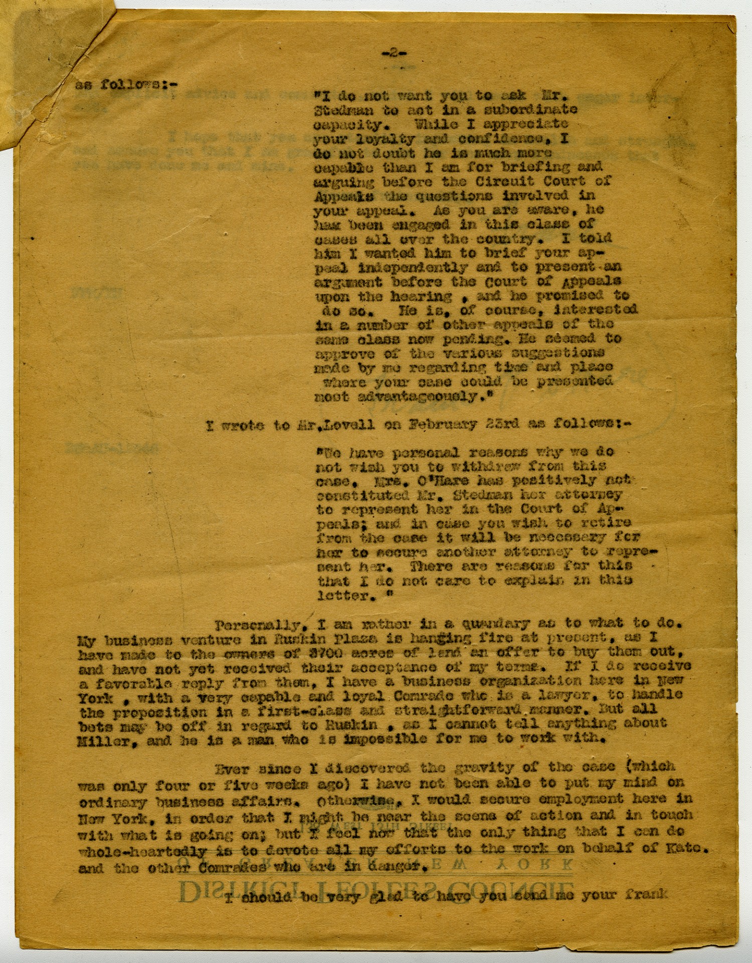 | Title | Frank P. O'Hare letter to Eugene V. Debs - February 28, 1918 |