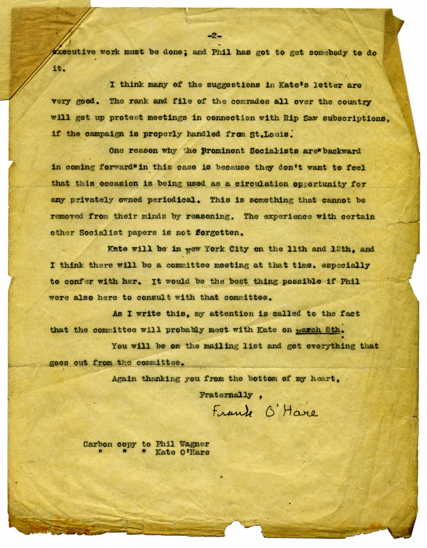 | Title | Frank P. O'Hare letter to Eugene V. Debs March 4,1918 |