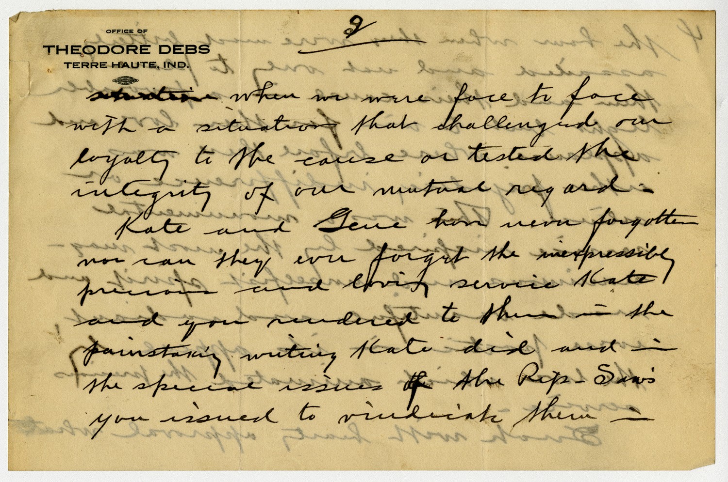 [page 3] when we were face to face with a situation that challenged our loyalty to the cause or tested the integrity of our mutual regard. Kate and Gene have never forgotten, nor can they every forget the inexpressibly precious and loving service Kate and you rendered to them in the painstaking writing Kate did and in the special issues of the Rip-Saws you issued to vindicate them
