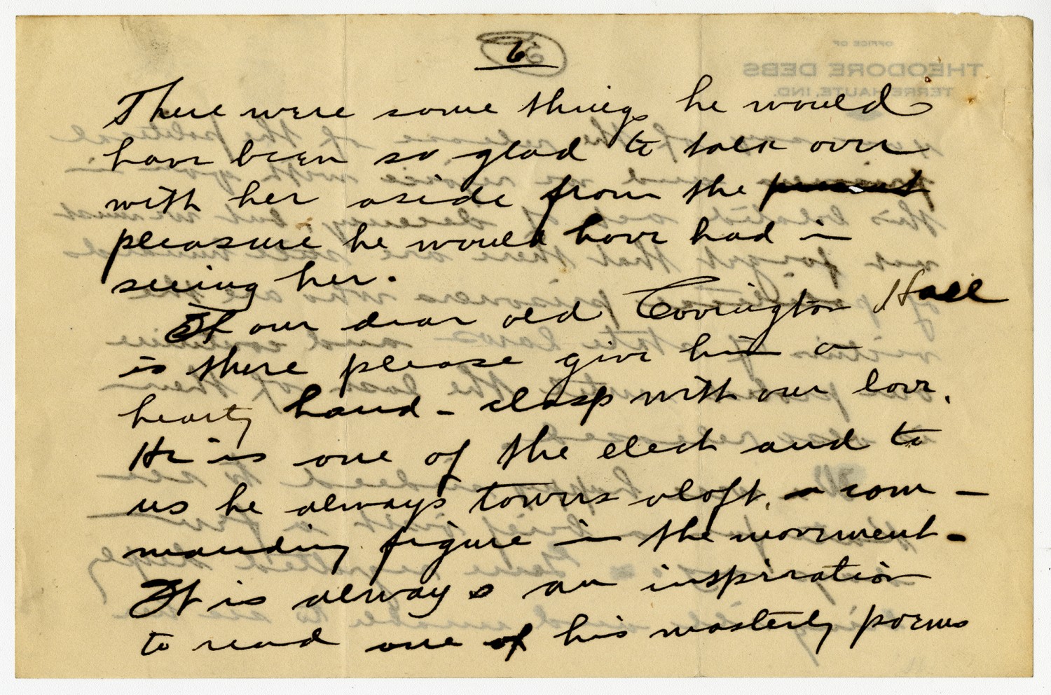 [page 6] There were some things he would have been so glad to talk over with her aside from the pleasure he would have had in seeing her. If our dear old Covington Hall is there please give him a hearty hand-clasp with our love. He is one of the elect and to us he always towers aloft a commanding figure in the movement. It is always in inspiration to read one of his masterly poems