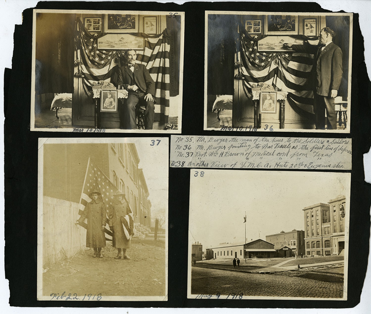 No 35 Mr. Dwyer the man of the hour to the Soldiers & Sailors No 36 Mr. Dwyer pointing to War Vessels as the first line of defence No. 37 Prvt. Wm H. Brown of Medical cord from Texas No. 38 Another View of Y.M.C.A. Huts 20th & Eugenia strs.