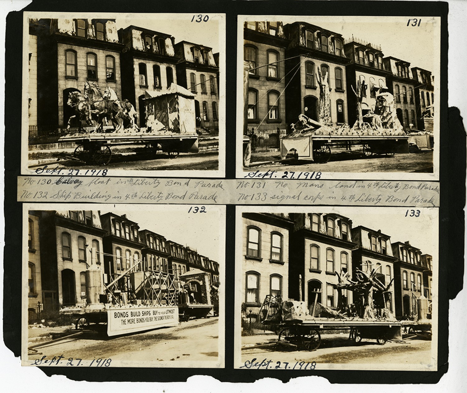 No 130 [Cavalry] float in 4th Liberty Bond Parade No 131 No Mans land in 4th Liberty Bond Parade No 132 Ship Building in 4th Liberty Bond Parade No 133 signal corps in 4th Liberty Bond Parade