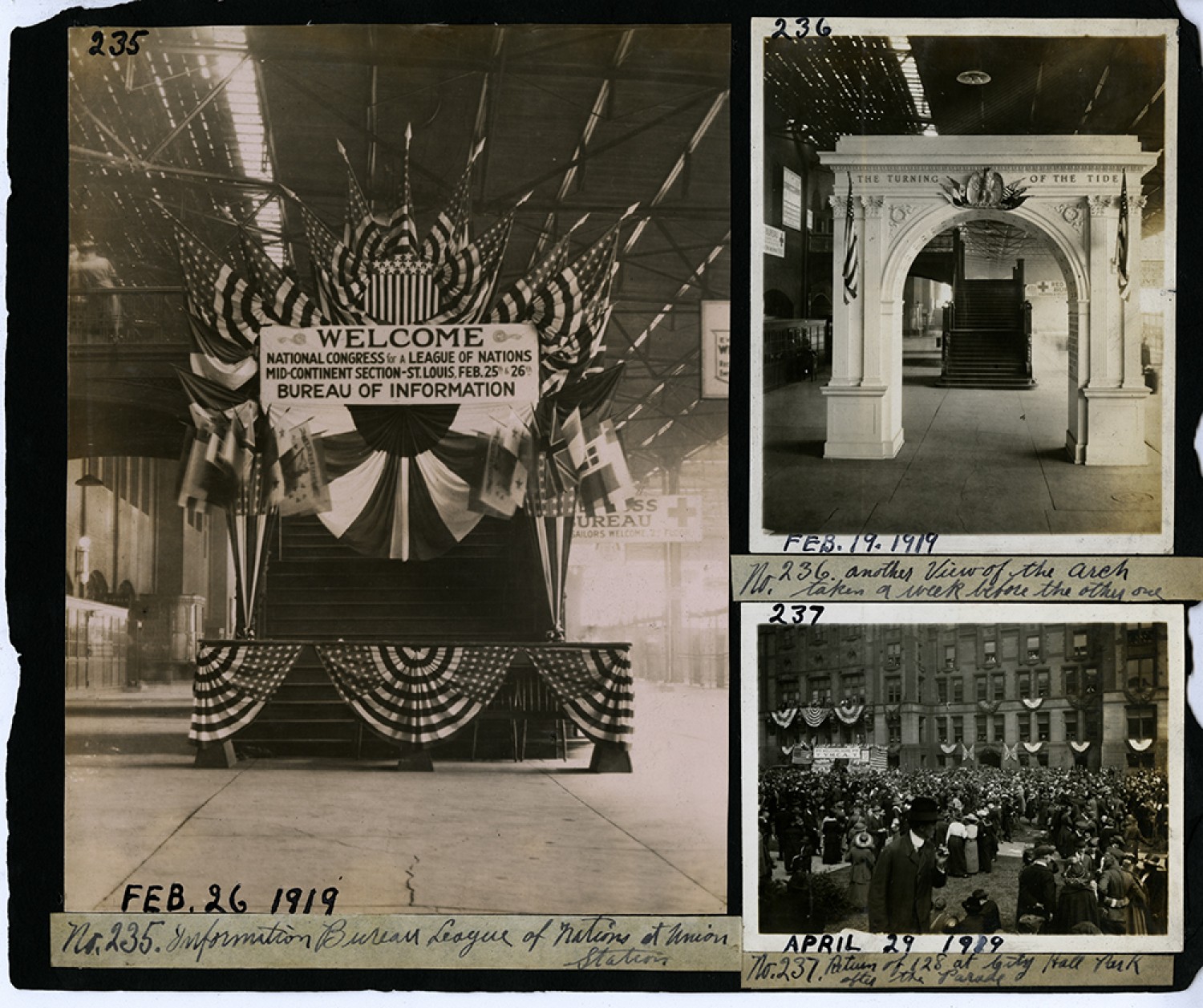 No. 235. Information Bureau League of Nations at Union Station No. 236. Another View of the arch taken a week before the other one No. 237. Return of 128 at City Hall Park after the Parade