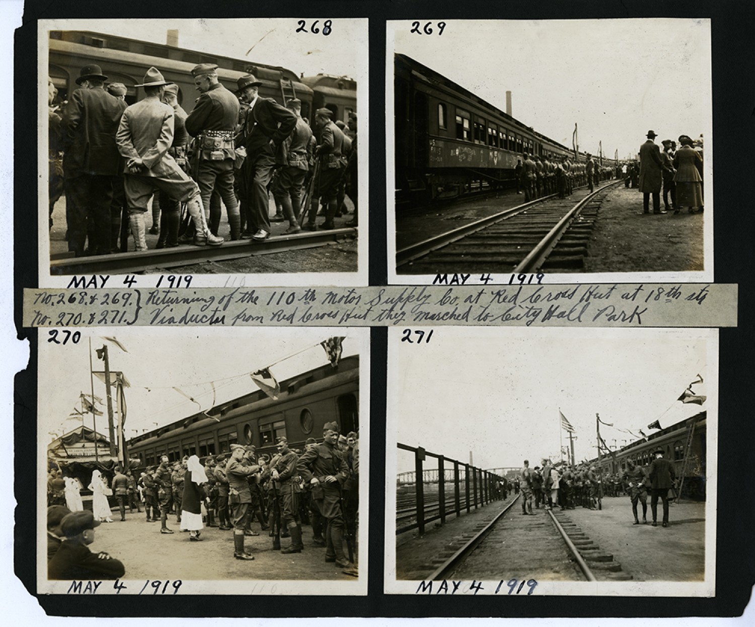 No. 268. & 269. No. 270. & 271.} Returning of the 110th Motor Supply Co. at Red Cross Hut at 18th str Viaducter from Red Cross Hut they marched to City Hall Park