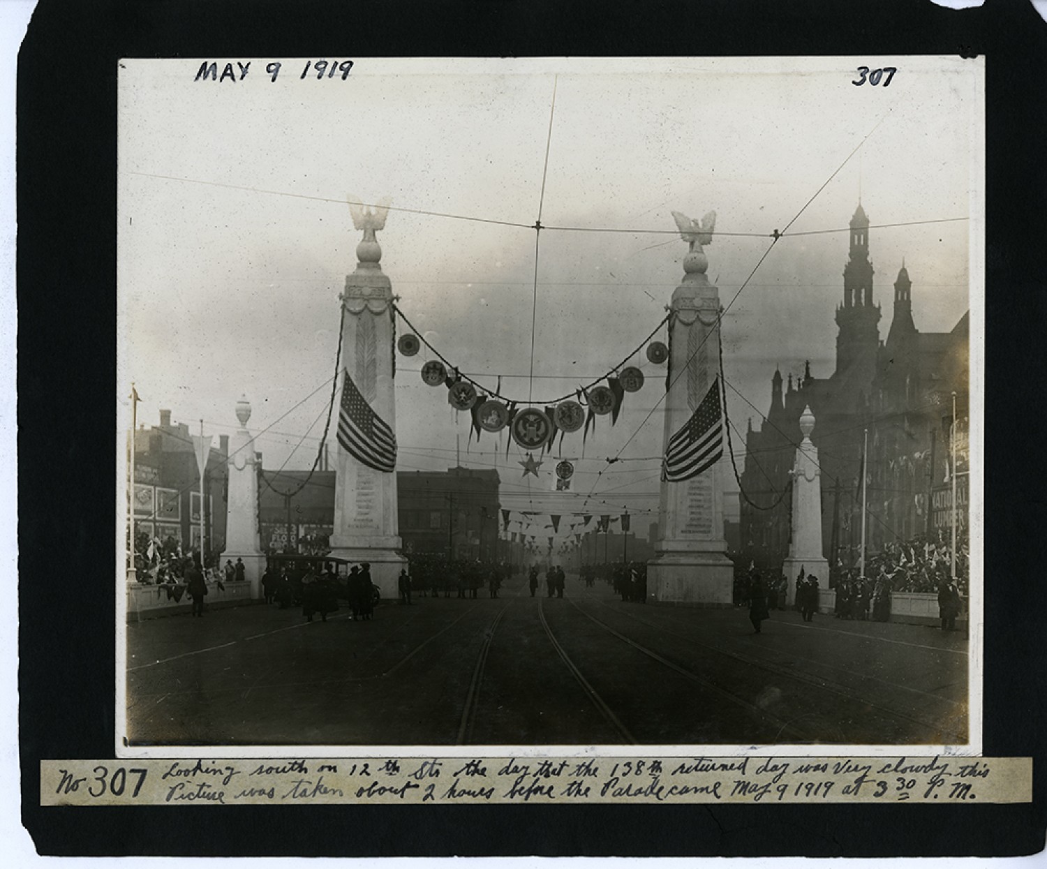 No 307 Looking south on 12th Str the day that the 128th retuned day was very cloudy this Picture was taken about 2 hours before the Parade came May 9 1919 at 3:30 P.M.