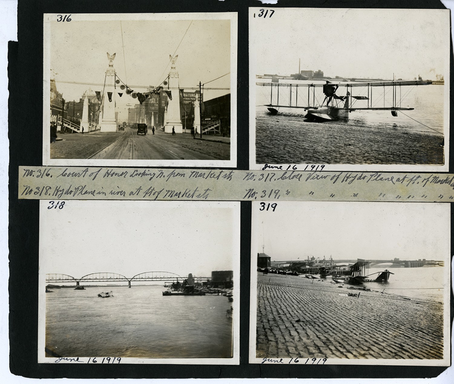 No. 316. Court of Honor Looking N. from Market St No. 317. Close View of Hydo Plane at Ft of Market str No 318. Hydo Plane in river at ft of Market str No. 319. [Close View of Hydo Plane at ft of Market str]