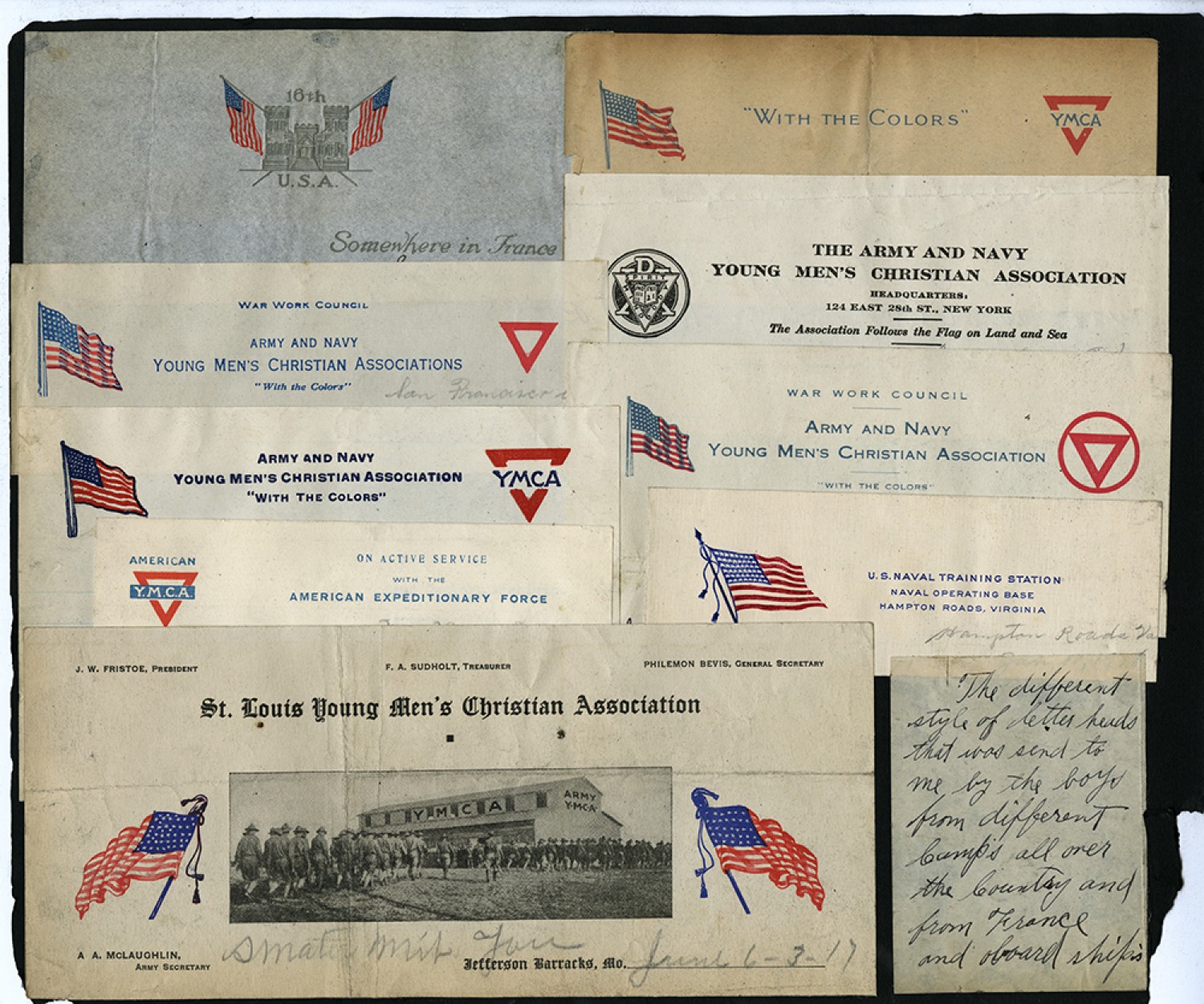 The different style of letter heads that was send to me by the boys from different Camps all over the country and from France and aboard ships