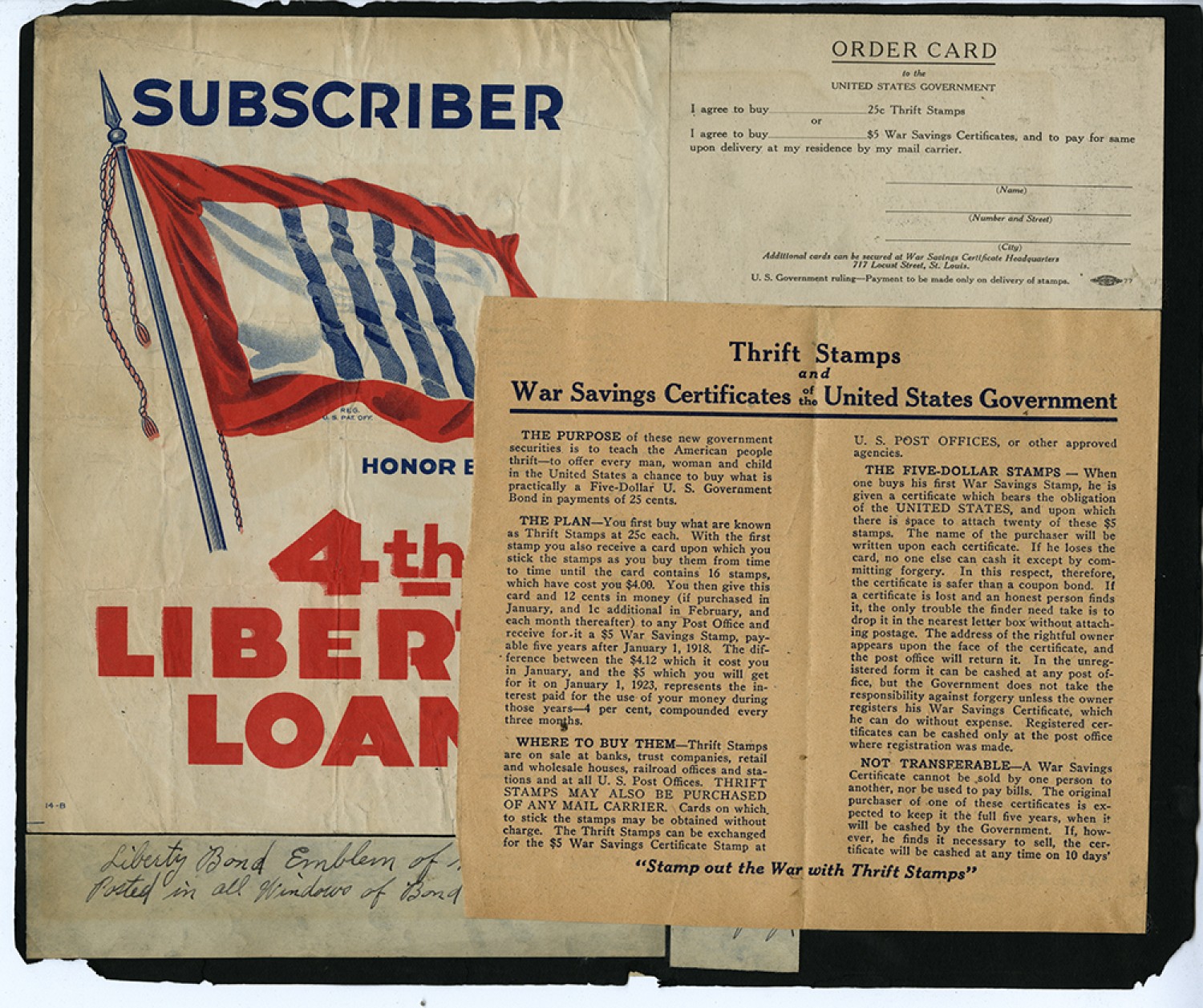 Library Bond Emblem of honor that was Posted in all Windows of Bond subscriber’s order Card that was used to get thrift Stamp subscribers after these were filled out and signed they were turned into head quarters and then mail man would call with stamps for Subscribers advertising matter used in thrift stamp Campaign