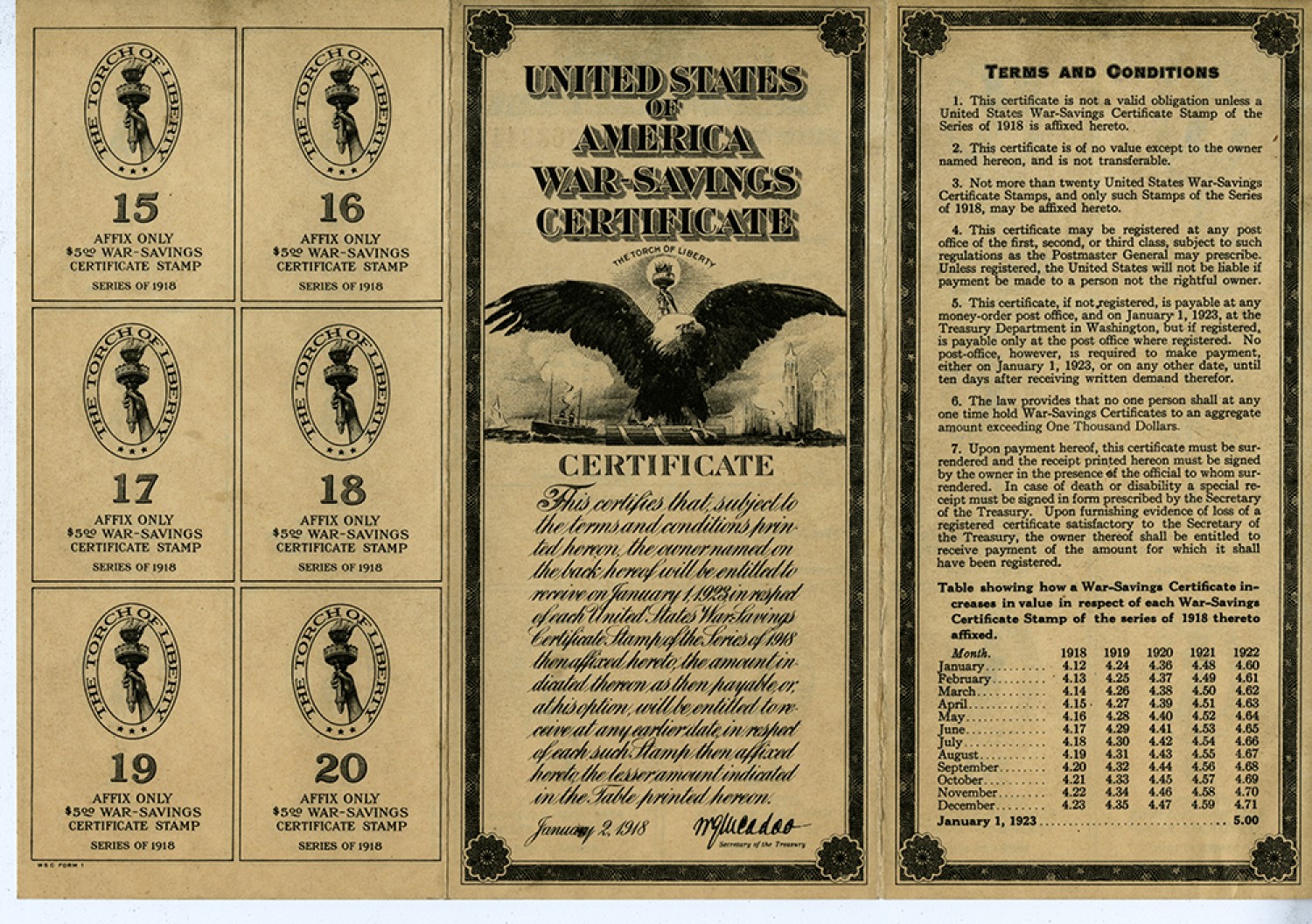 $5.00 War Saving Certificate and holder This Card was issued to all who signed saving cards to save food