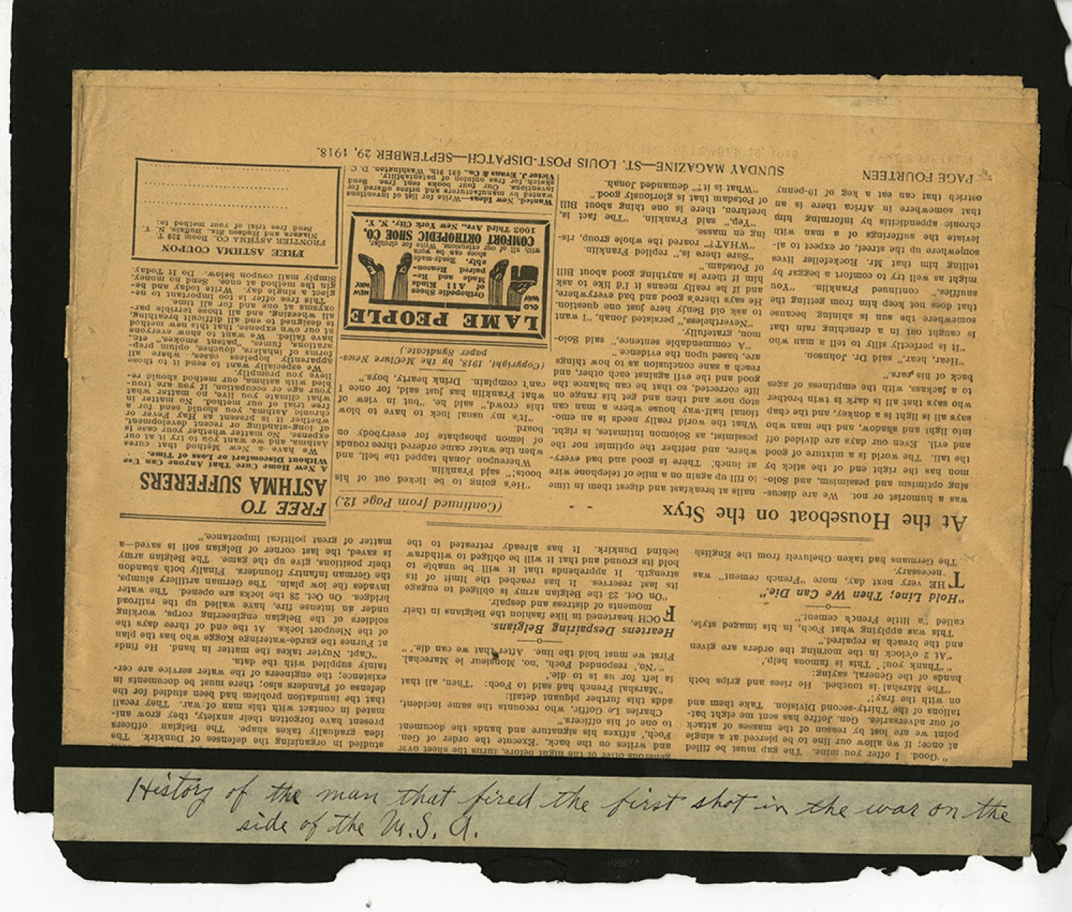 | Source | Peters, William. World War I Scrapbook. 1915-1919. Peters, William Collection. Missouri History Museum, St. Louis, Missouri. |