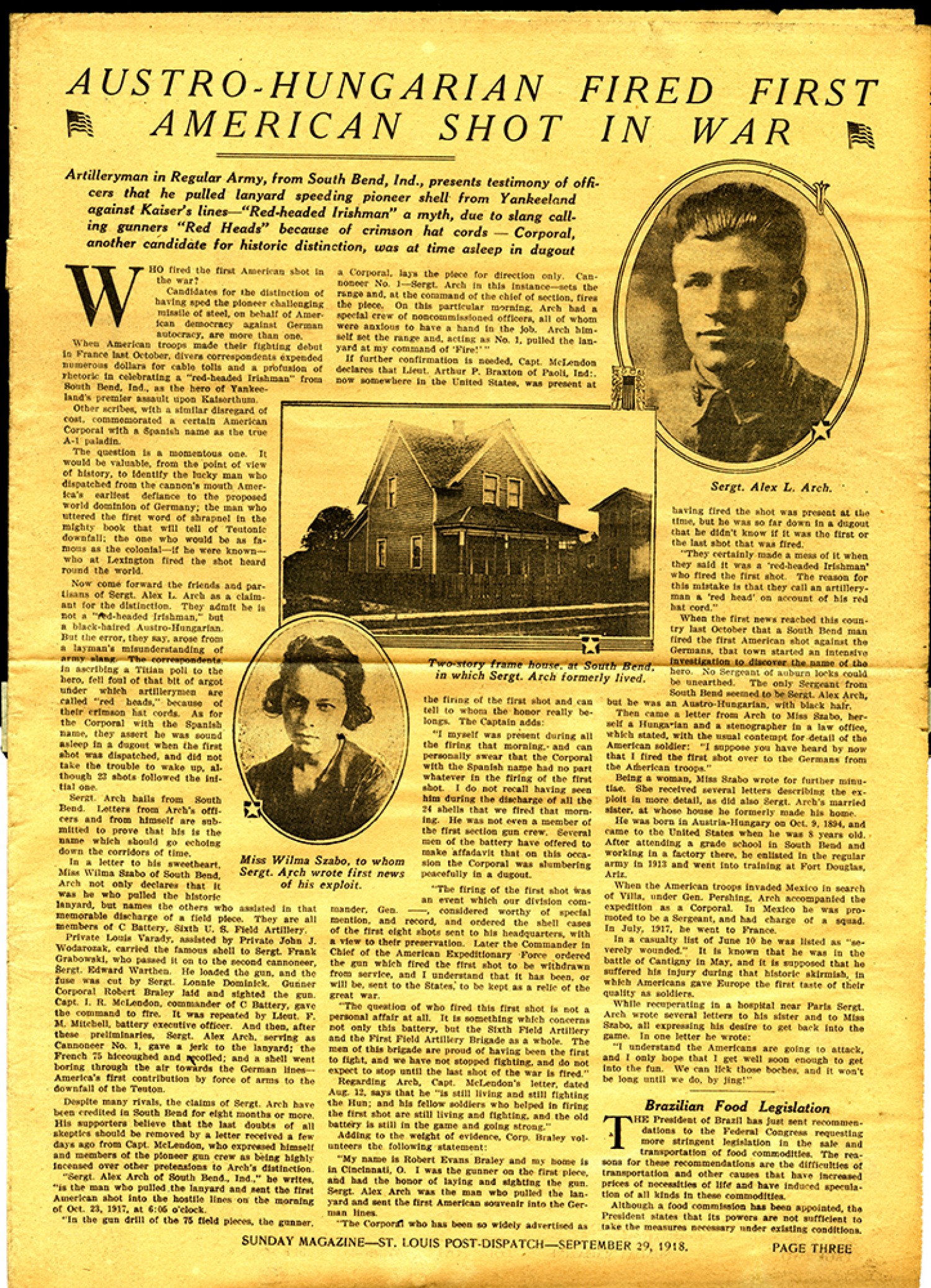 [newspaper clipping] AUSTRO-HUNGARIAN FIRED FIRST AMERICAN SHOT IN WAR