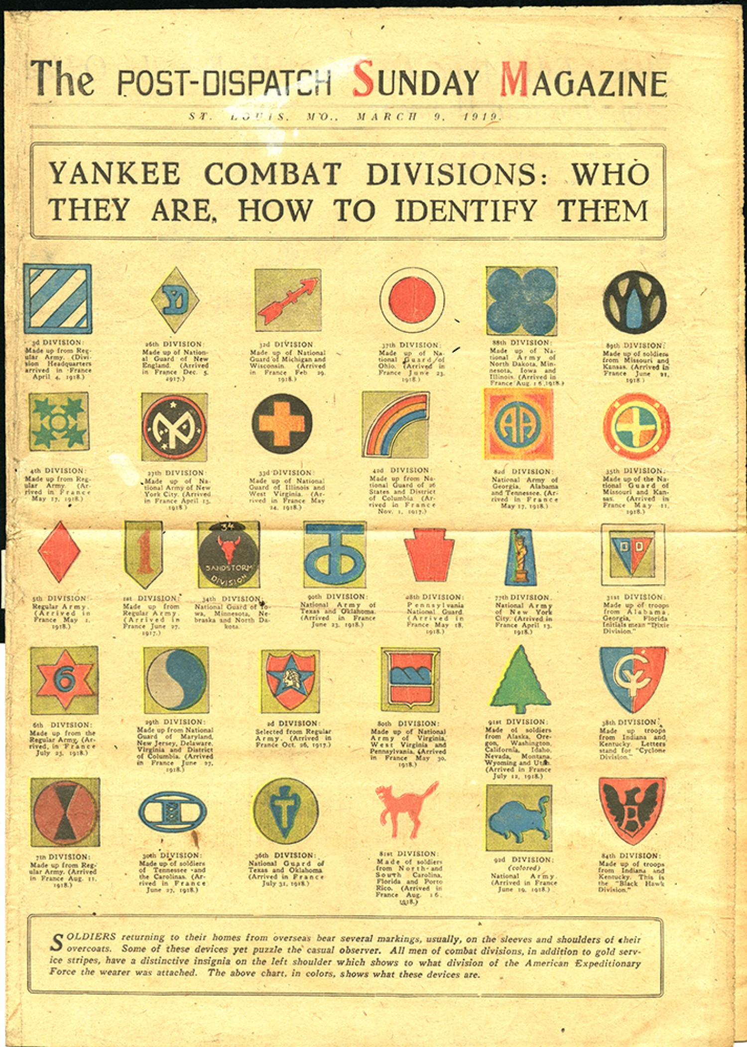 Distinctive Insignia of A.E.F. Men that they wore on the left shoulder that show of what Division they were of