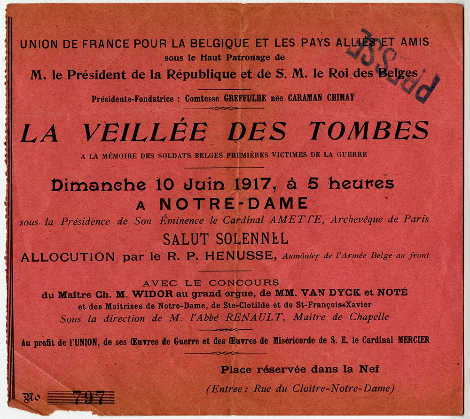 [Souvenir Ticket in French] LA VEILLEE DES TOMBES