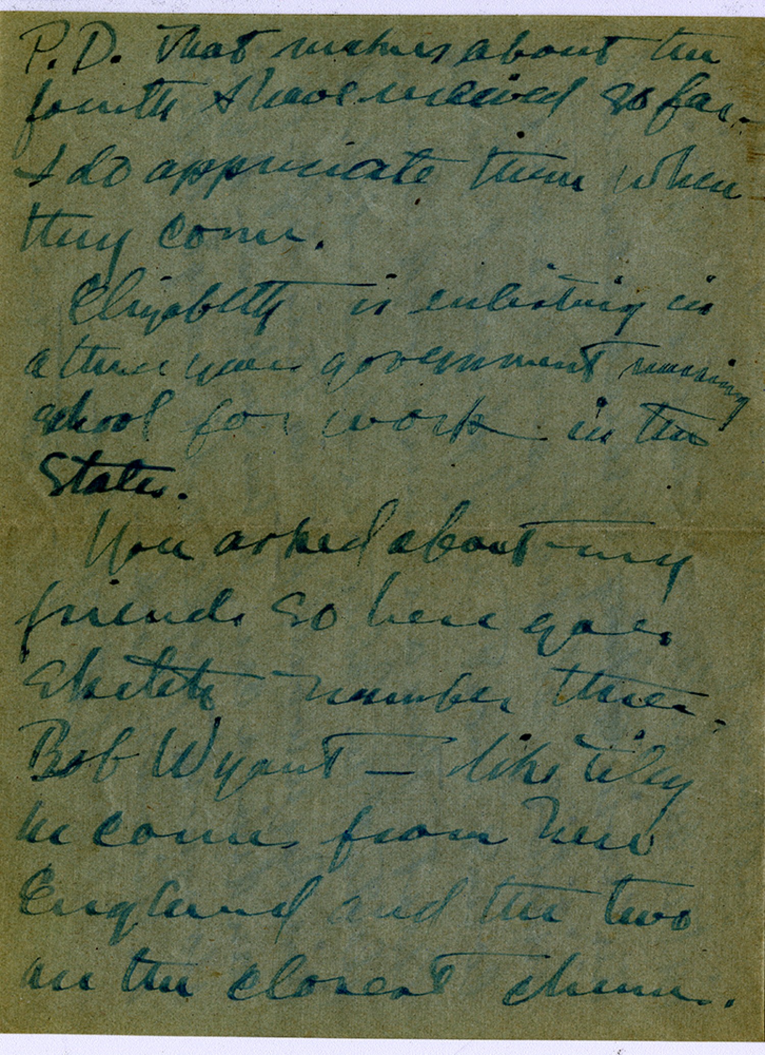 [St. Louis Post Dispatch] That makes about the fourth I have received so far. I do appreciate them when they come. Elizabeth is enlisting in a three year government nursing school for work in the States. You asked about my friends so here goes sketch number three. Bob Wyant like Tiley he comes from New England and the two are the closest chums.