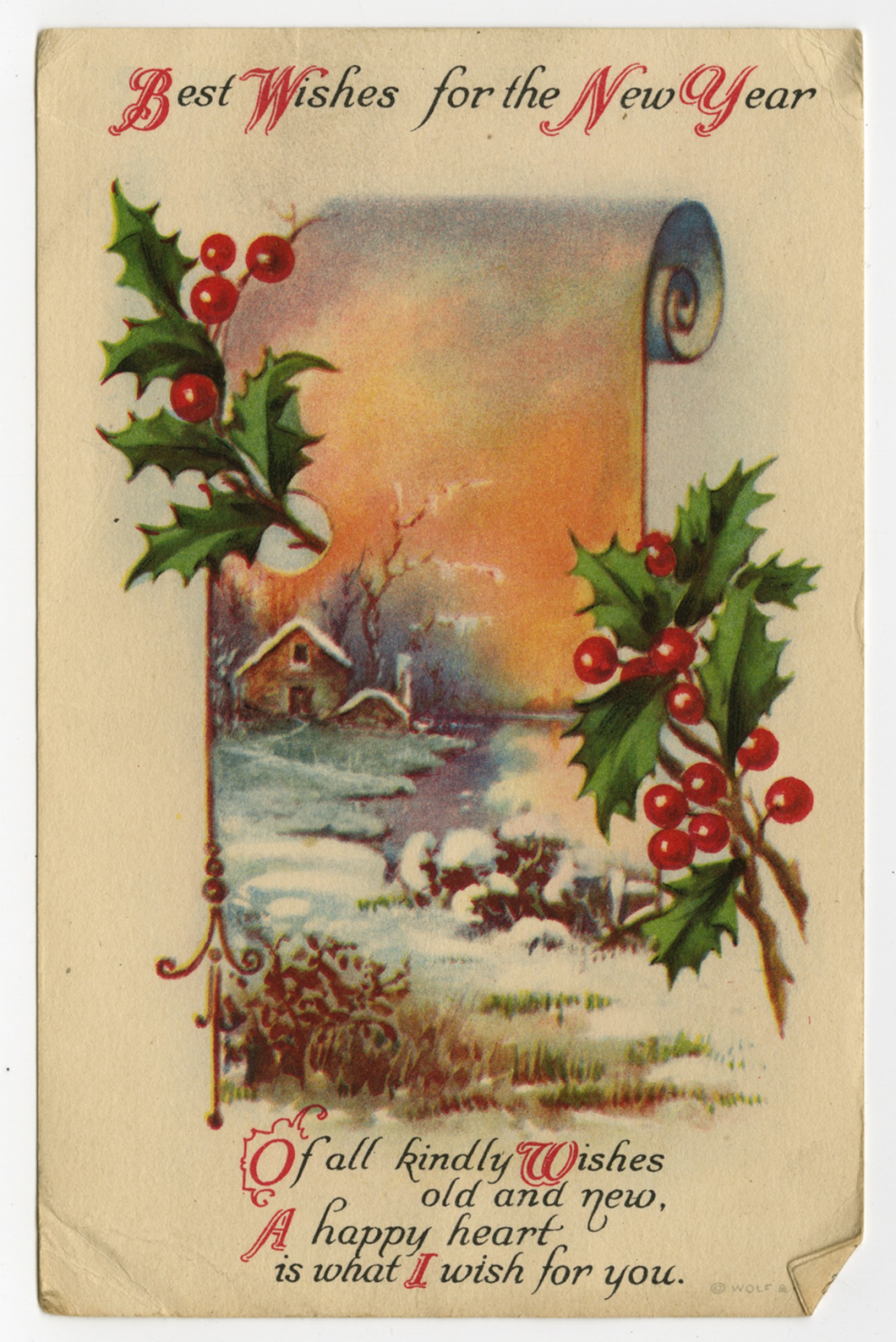 [postcard] Best Wishes for the New Year Of all kindly Wishes old and new, A happy heart is what I wish for you.