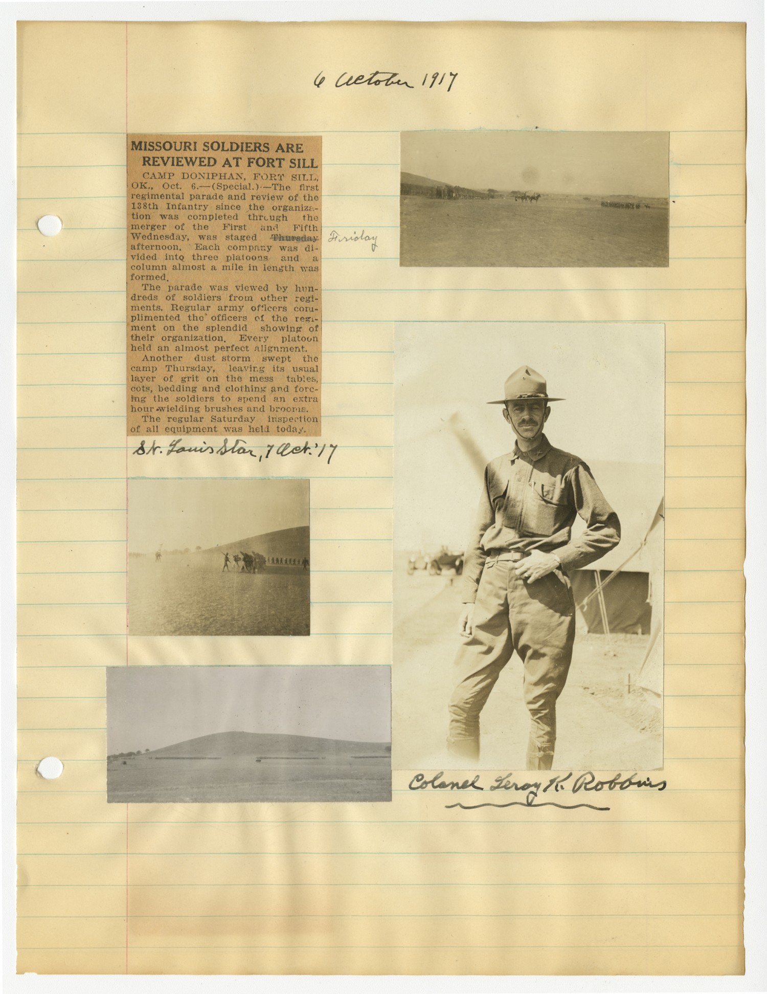 6 October 1917 [newspaper article] Missouri Soldiers are Reviewed at Fort Sill St. Louis Star, 7 [October 1917] Colonel Leroy R. Robbins