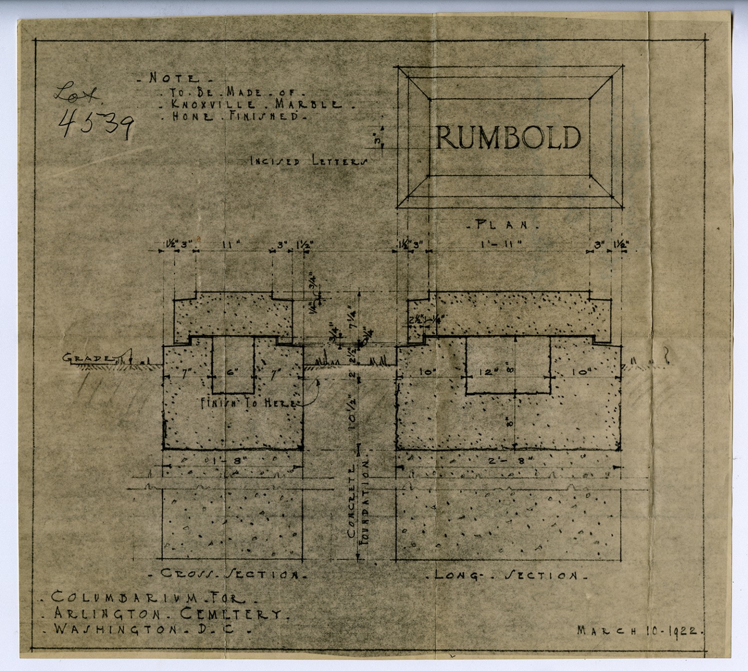 Burial Plan for Frank M. Rumbold - March 10, 1922