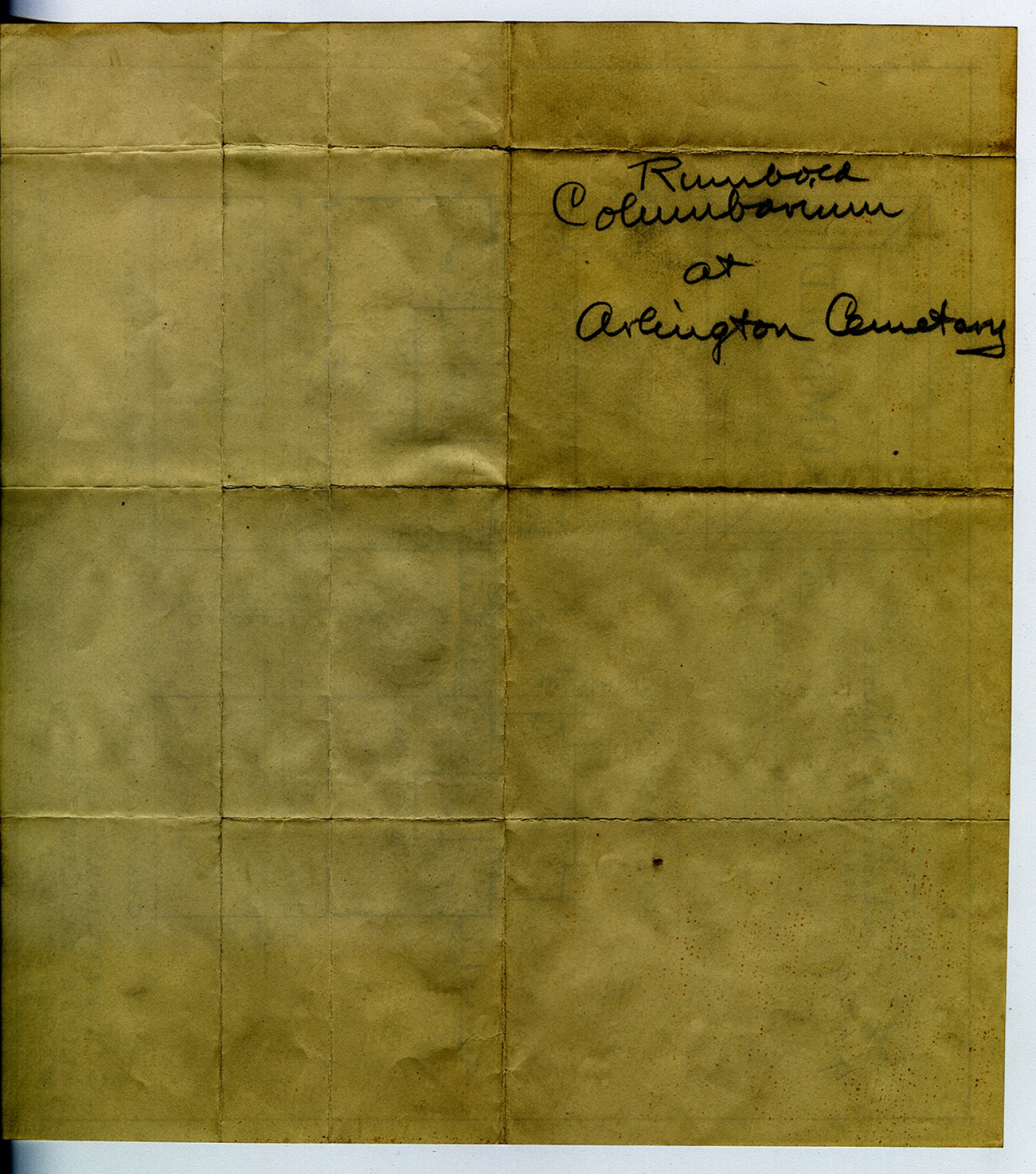 | Description | Burial plan for Colonel Frank M. Rumbold at Arlington Cemetery. Frank Meeker Rumbold served as Colonel of the 128th Field Artillery during World War I. He later served as Adjutant General of Missouri from 1925 to 1927. |