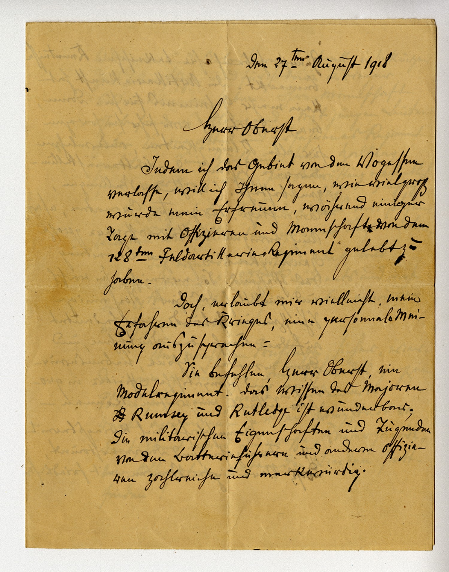 | Description | Letter from Captain Bedoust written in German. Frank Meeker Rumbold served as Colonel of the 128th Field Artillery during World War I. He later served as Adjutant General of Missouri from 1925 to 1927. |