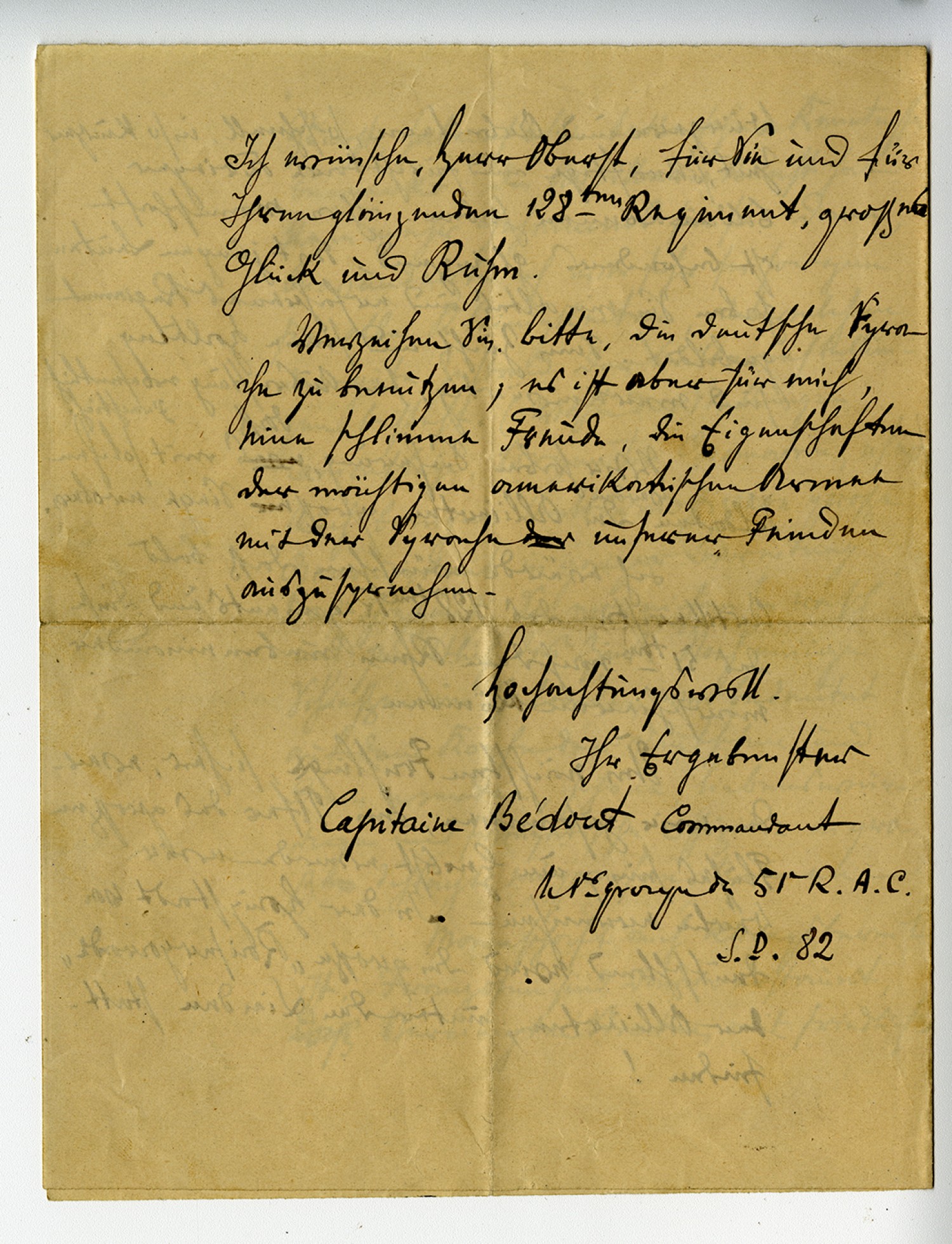 Captain Bedoust letter - 1918