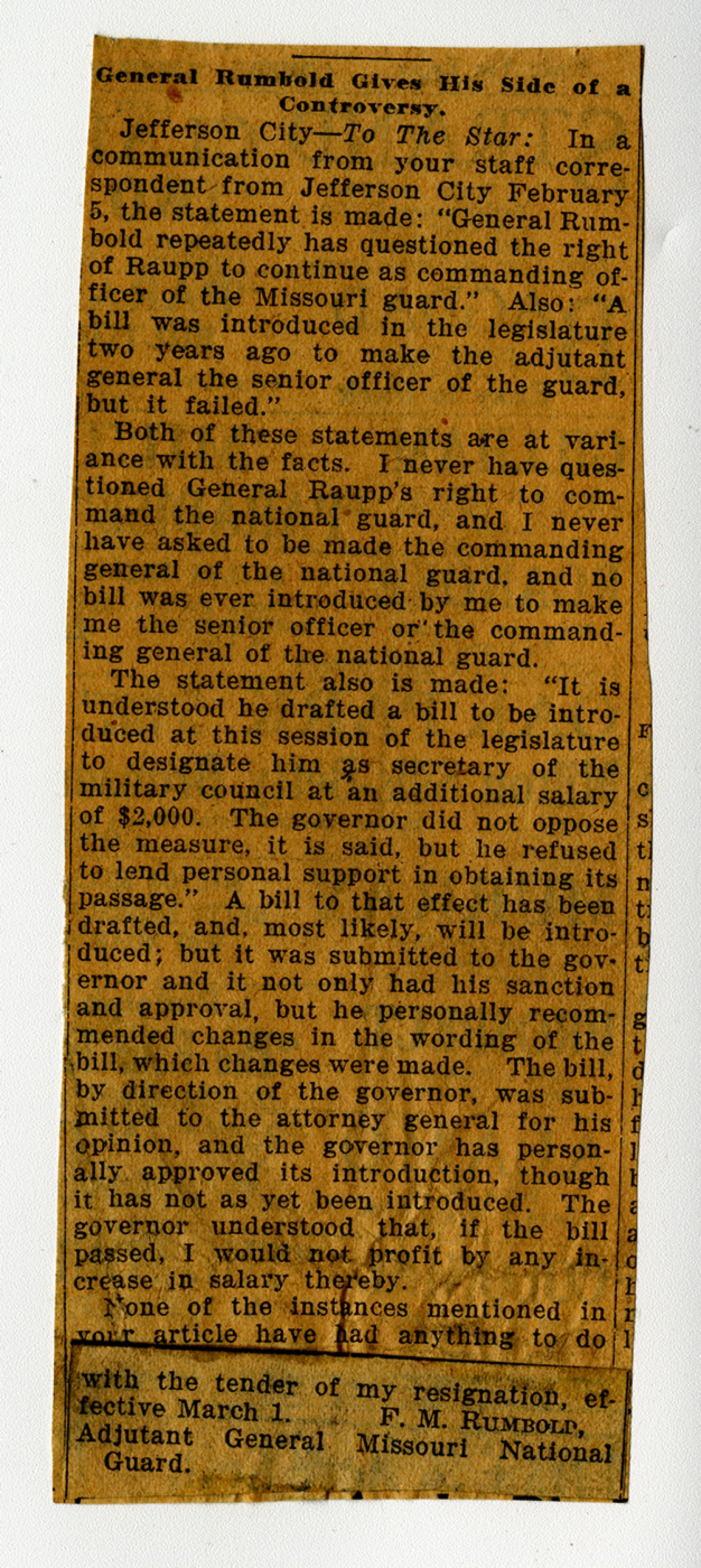 | Source | Unknown. General Rumbold Gives his Side of a Controversy. n.d. Rumbold, Frank M., General Collection. A1331. Missouri History Museum, St. Louis, Missouri. |