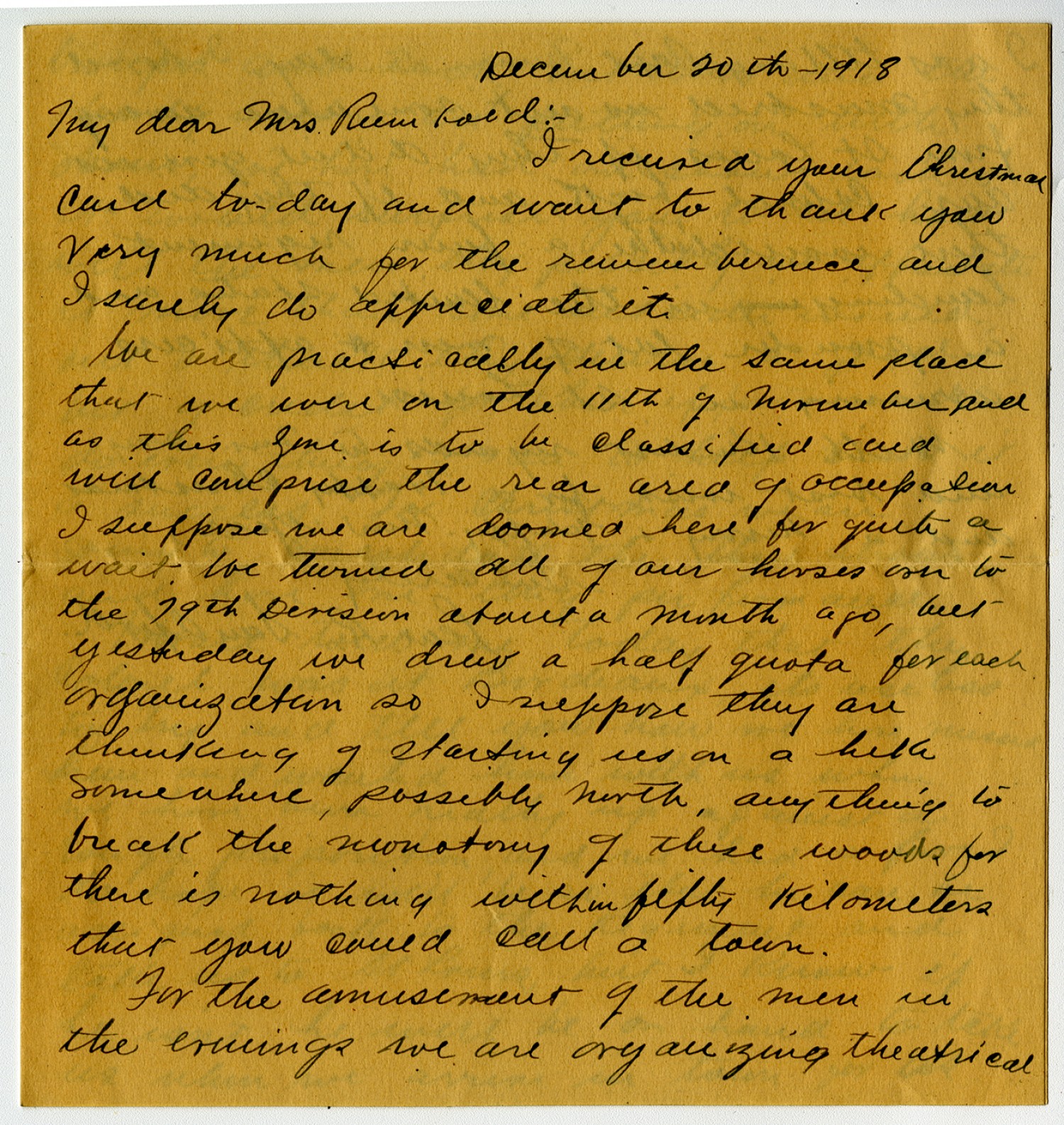 Leon R. Sandford letter to Mrs. Rumbold - December 20, 1918