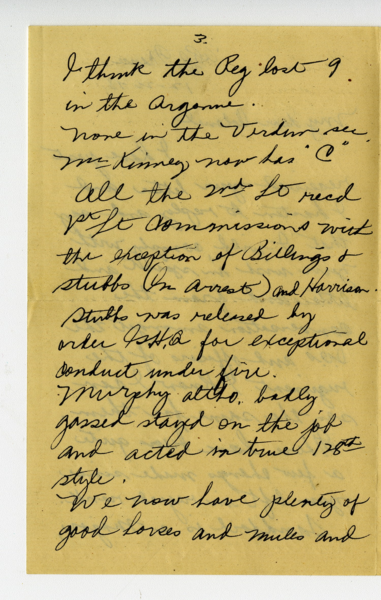 [page 3] I think the Reg lost 9 in the Argonne. None in the Verdun sec Mr Kinney now has