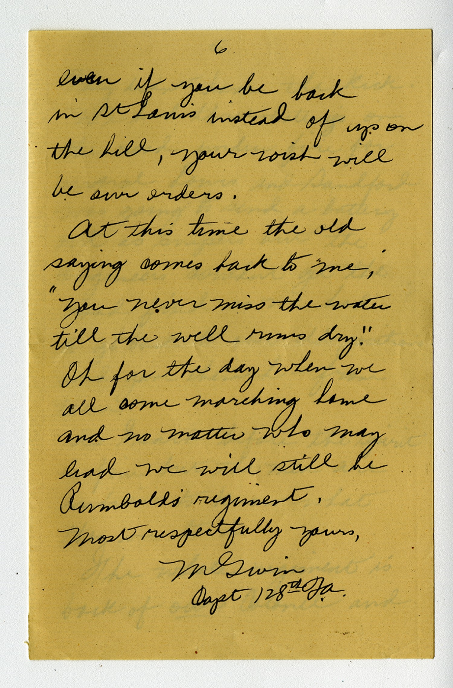[page 6] even if you be back in St Louis instead of up on the hill, your wish will be our orders. At this time the old saying comes back to me;
