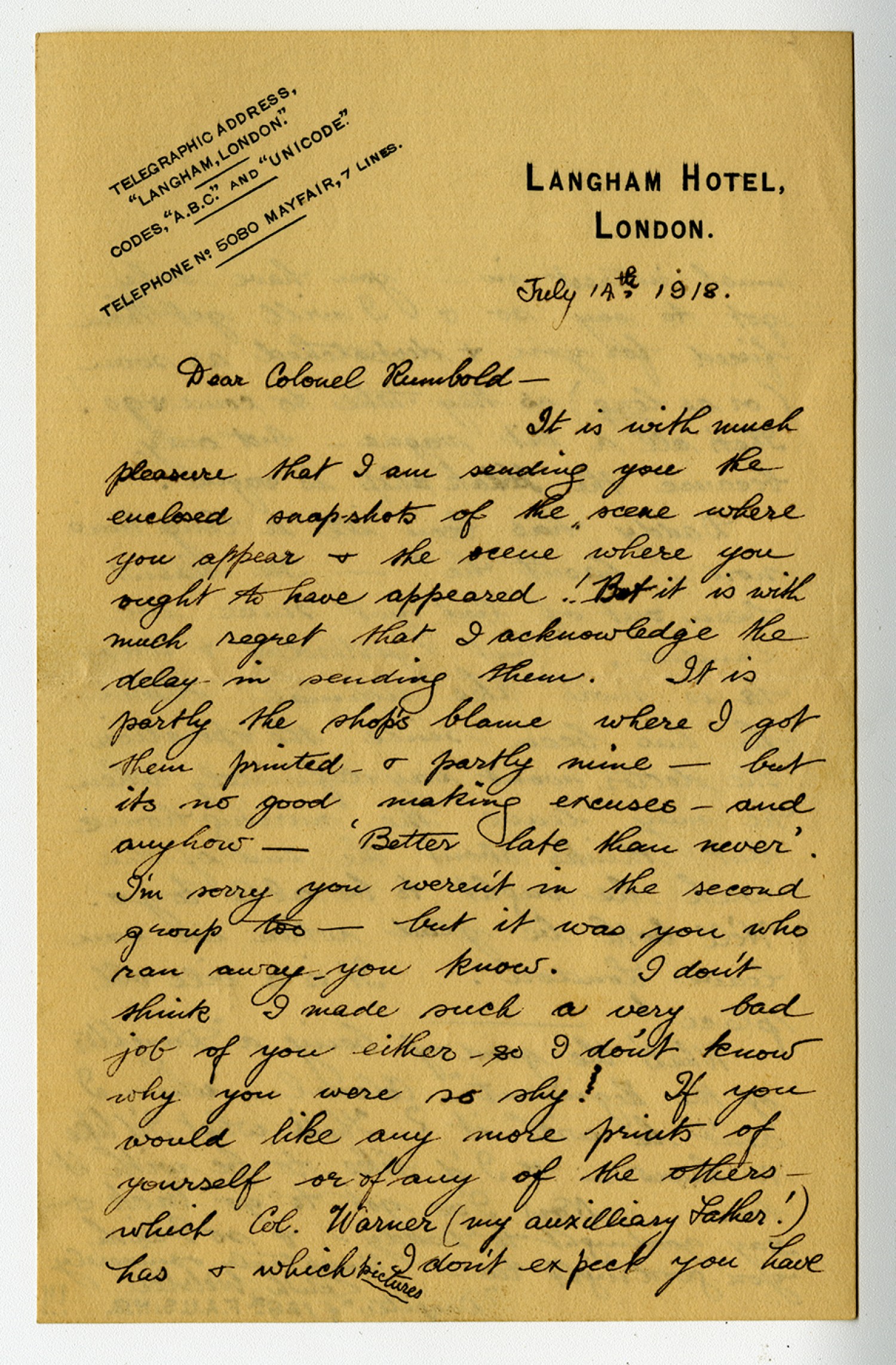 [Langham Hotel letterhead] TELEGRAPHIC ADDRESS,