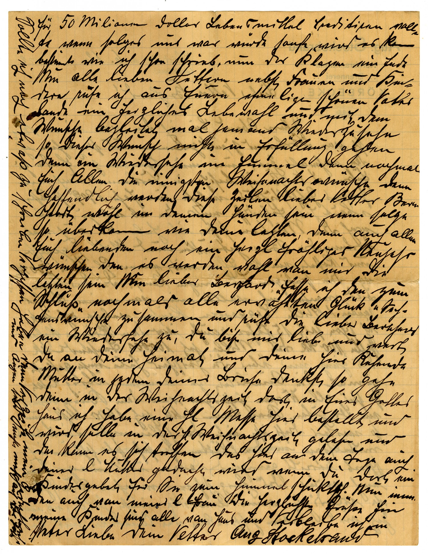 | Description | In this December 6, 1922 letter to his cousin Bernard Rustemeyer of Osage County, August Stockebrand of Korbecke, Germany discusses inflation, famine and post-war living conditions. Included with the letter is a piece of German currency. Translation provided by Raymond Backes. |