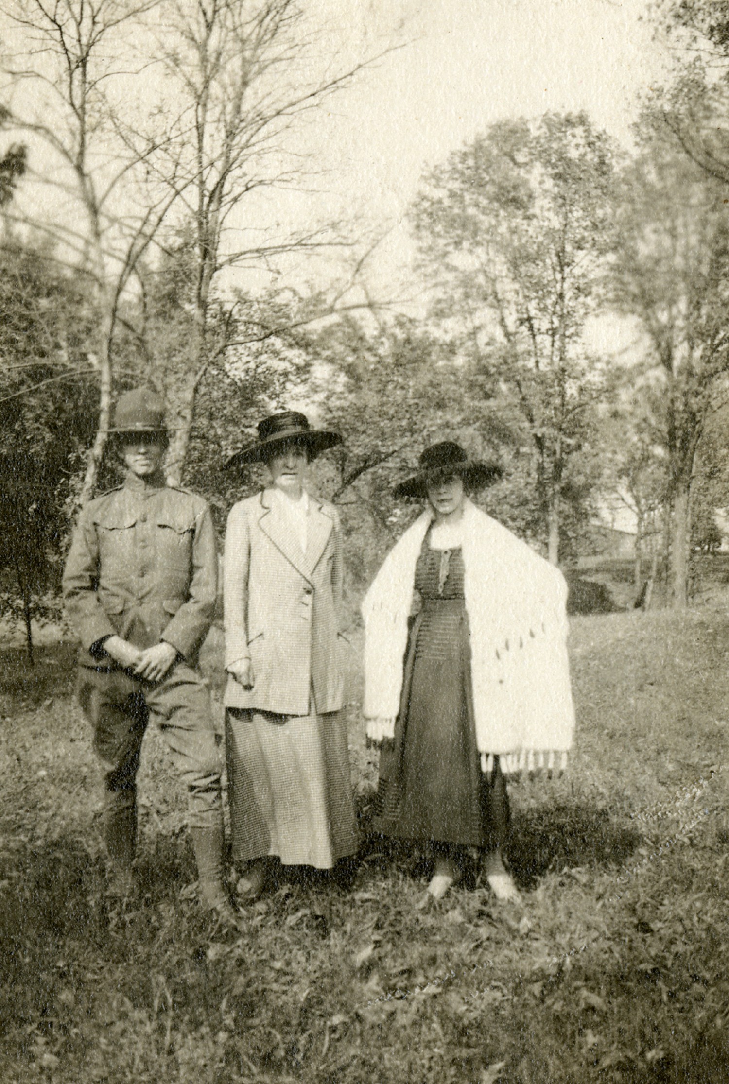 Ernest W. Slusher, Lilian Slusher, and Harriet Brown ca. 1918.