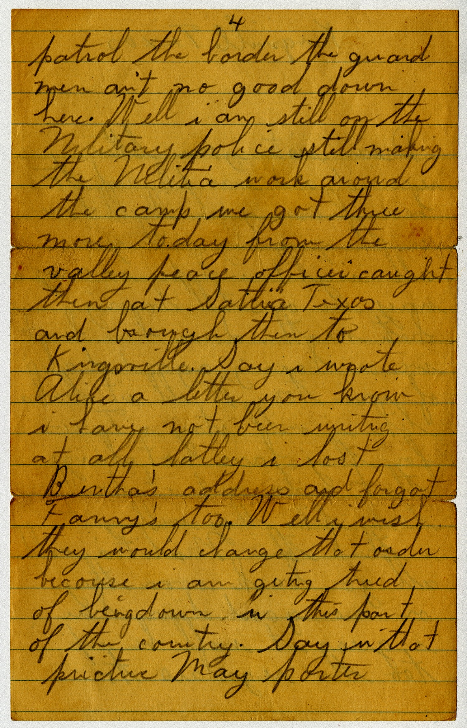 | Source | Vie. Oliver. Letter to Grace from Kingsville, Texas. n.d. Oliver Vie Papers, 1913-1919. A2285. Missouri History Museum, Saint Louis, Missouri. |