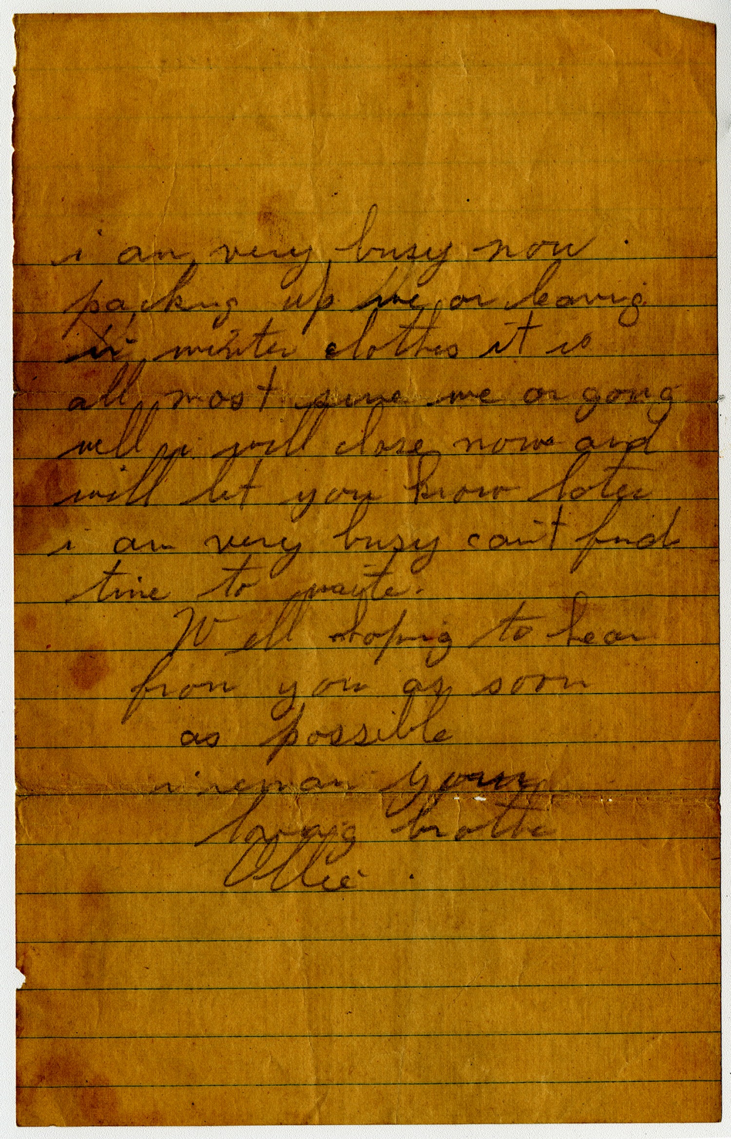 | Source | Vie, Oliver. Letter to Grace from San Benito. n.d. Oliver Vie Papers, 1913-1919. A2285. Missouri History Museum, Saint Louis, Missouri. |