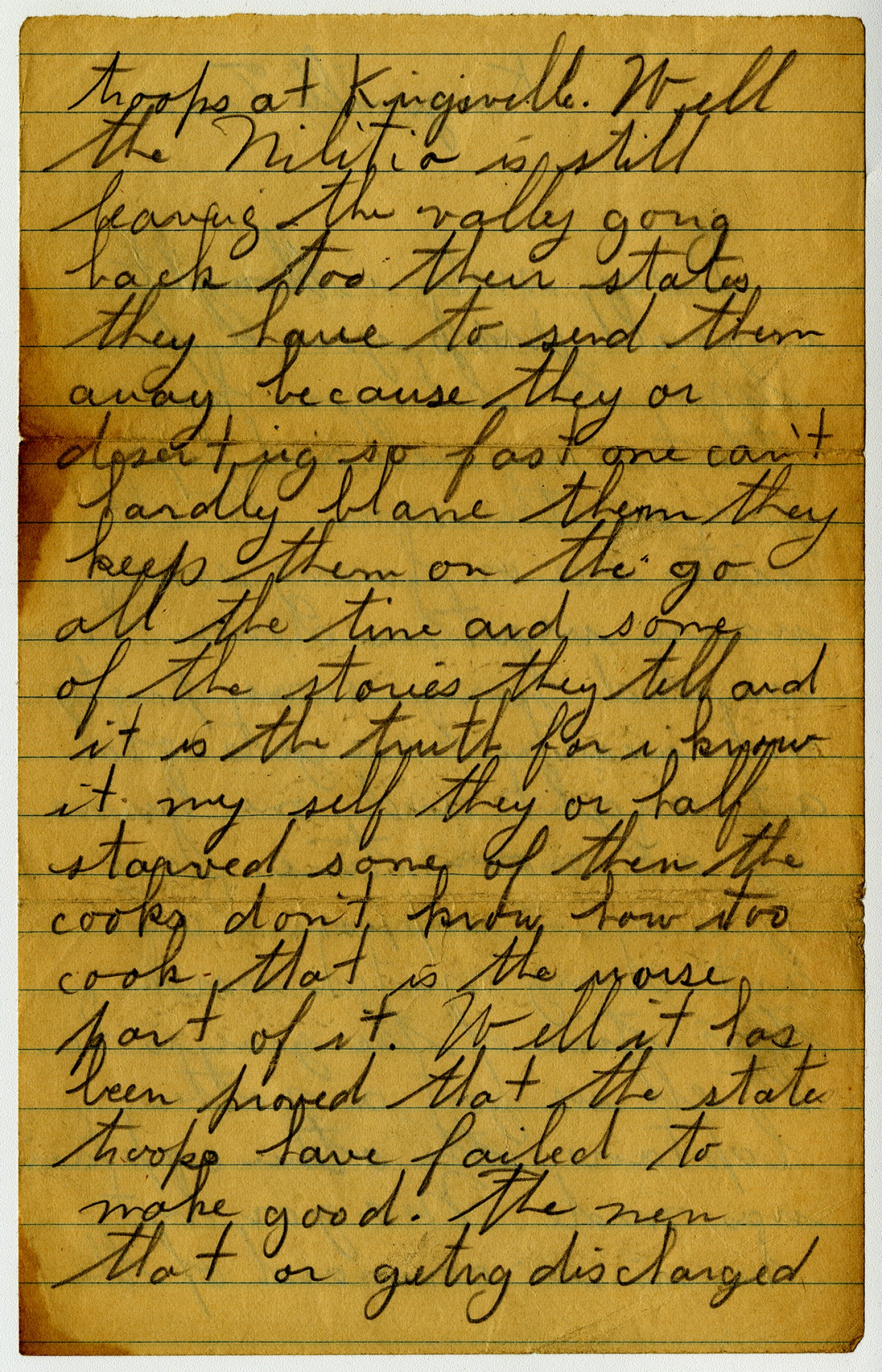 troops at Kingsville. Well the Militia is still leaving the valley gong back too their states they have to send them away because they or deserting so fast one can