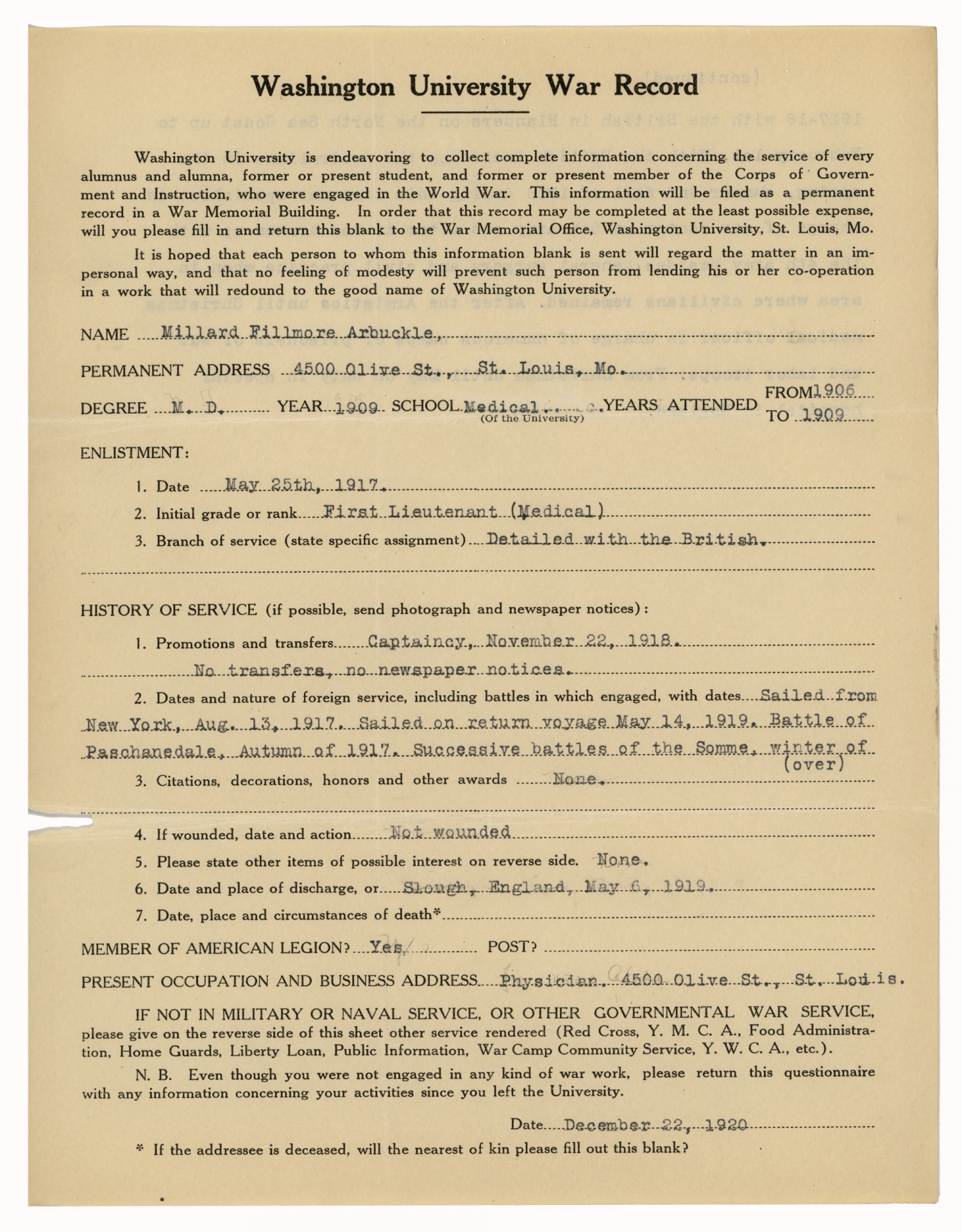 | Title | War Record of Millard Fillmore Arbuckle |