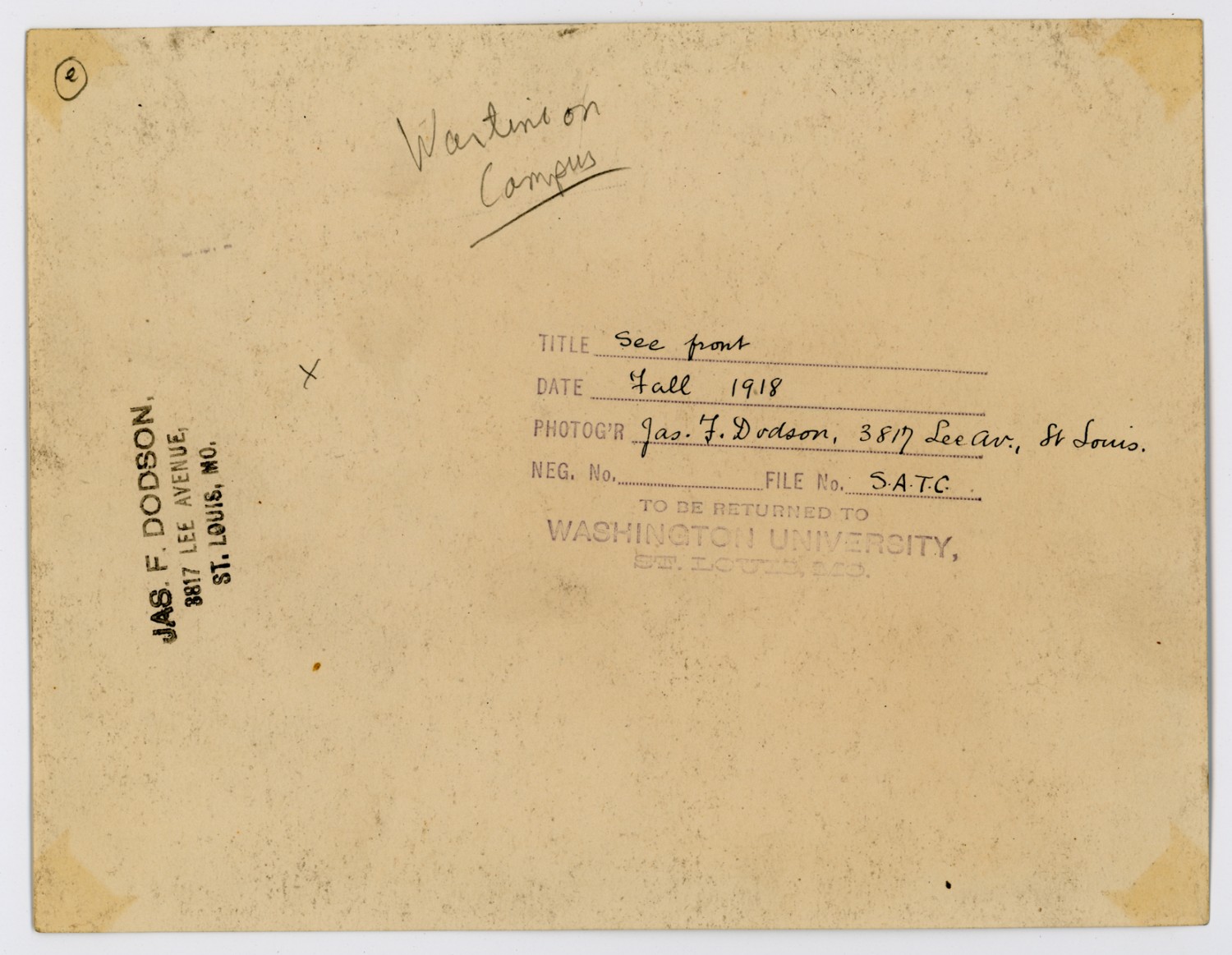 Wartime on Campus Title See front Date Fall 1918 Photog