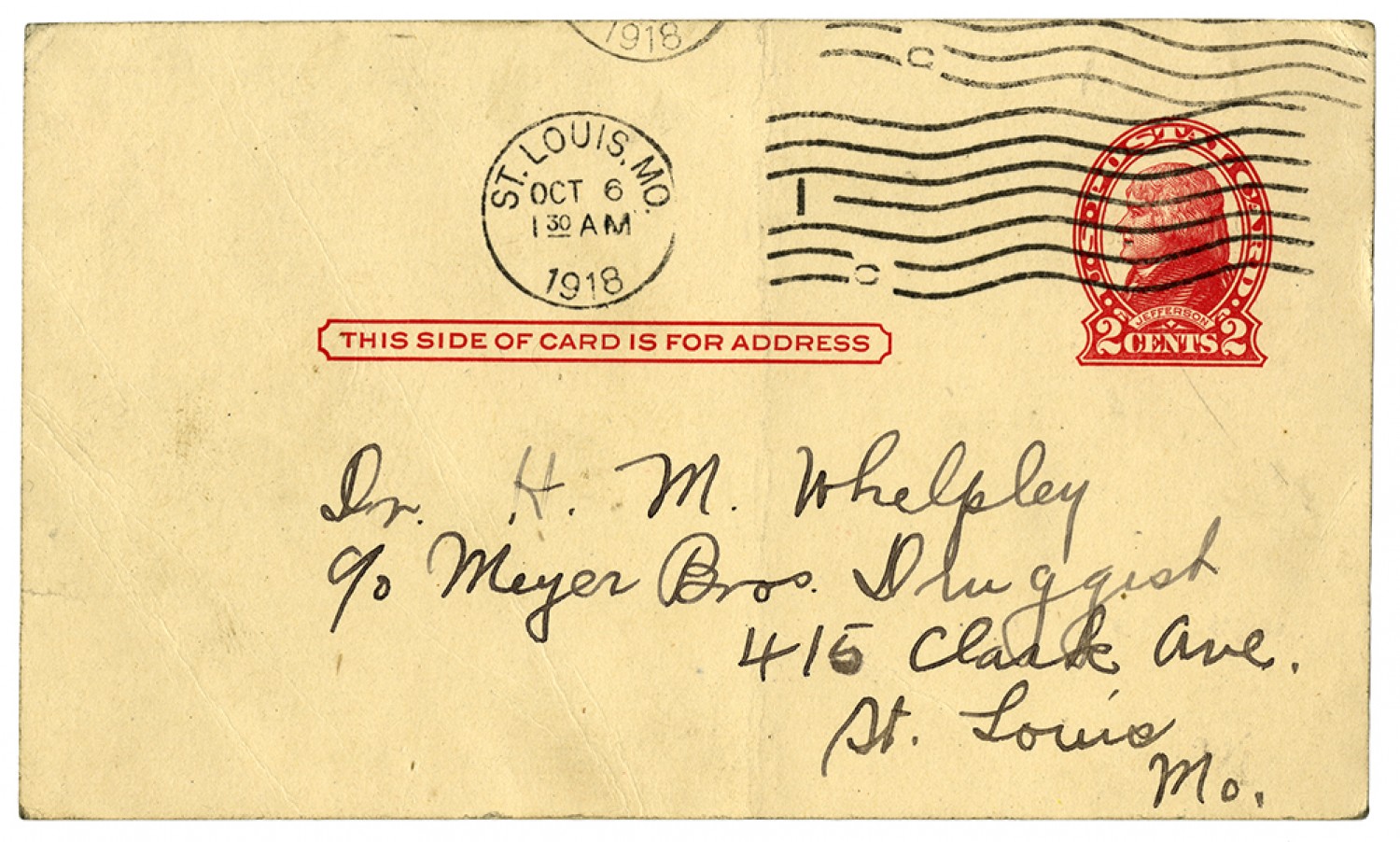Dr. [Henry Milton] Whelpley c/o Meyer [Brothers] Druggist 415 Clark Ave St. Louis [Missouri]