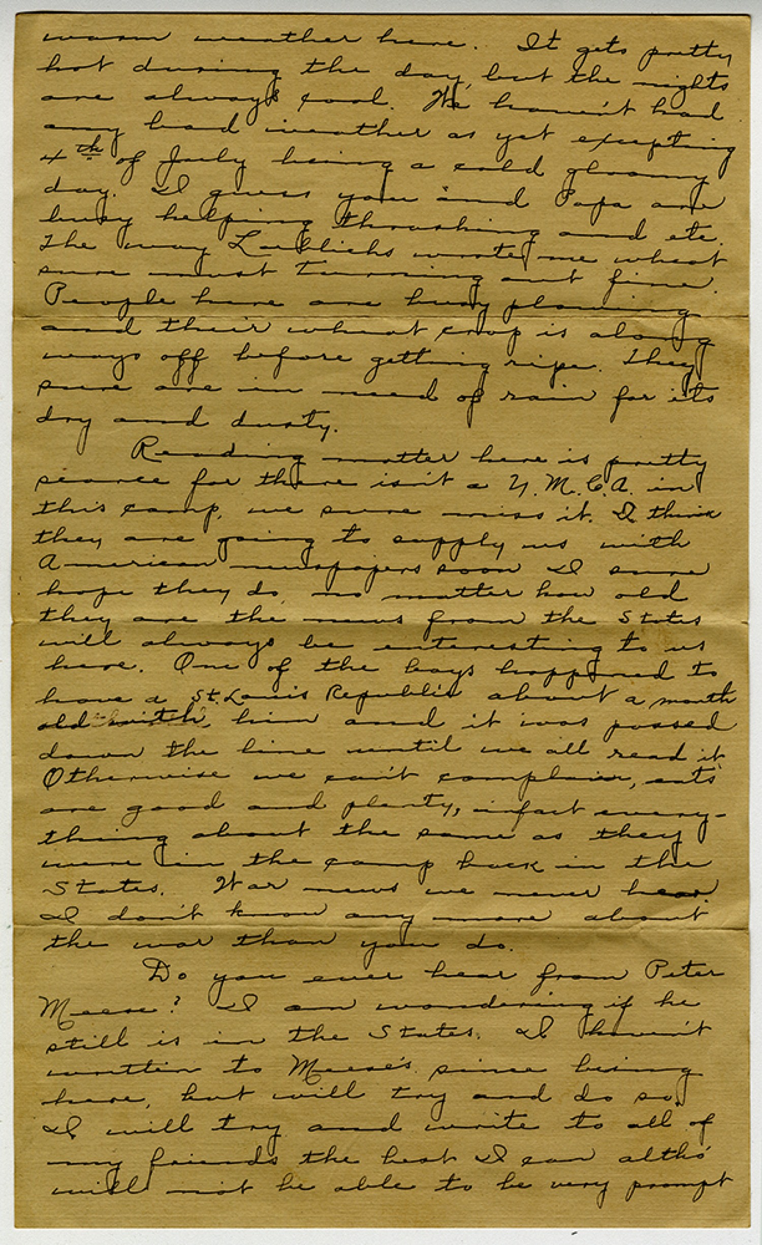 | Source | Wilde, George. Letter from George Wilde. 08 July 1918. George Wilde Collection. Arnold Historical Society, Arnold, Missouri. |